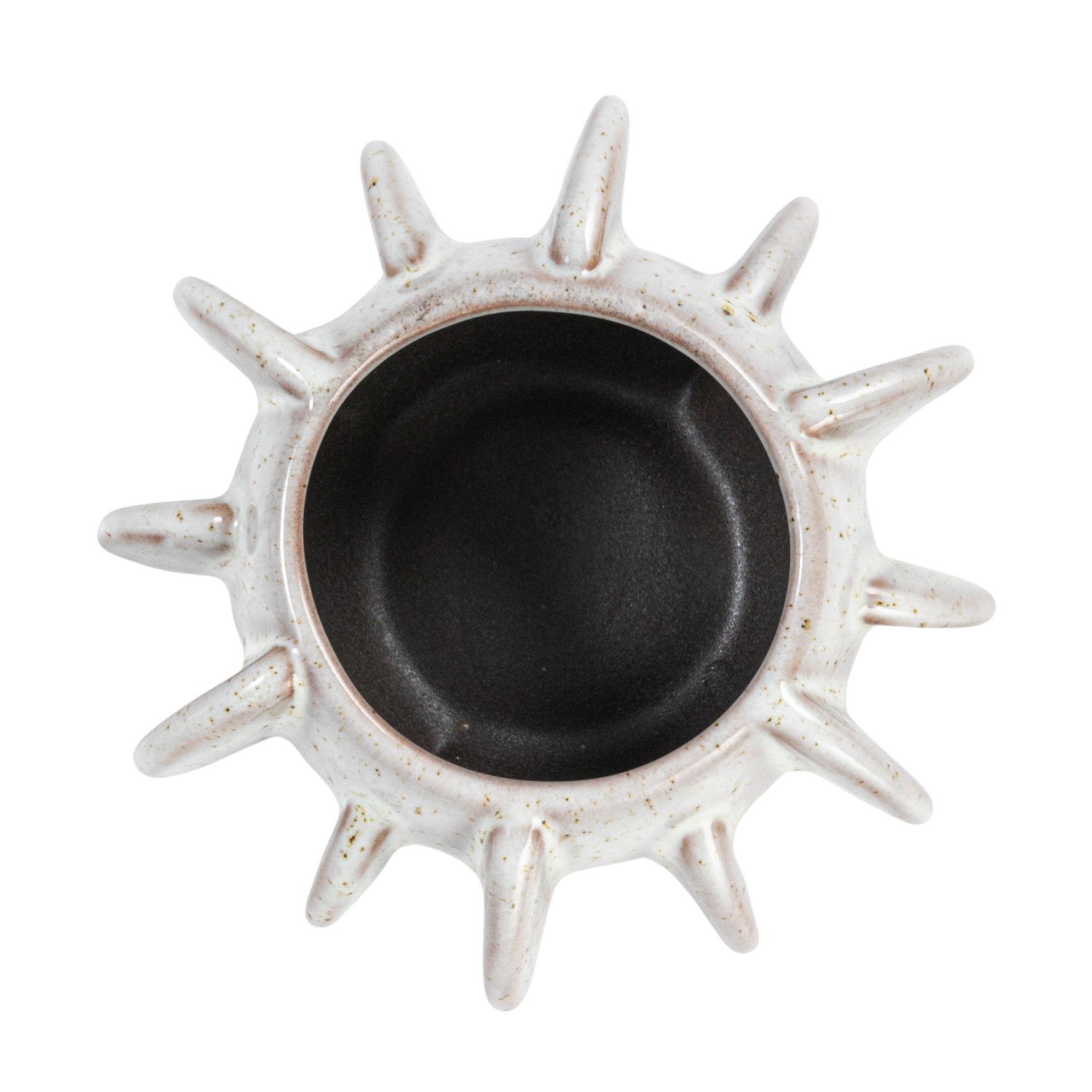 This handcrafted white speckled stoneware planter with reactive glaze is a stunning piece that exudes natural elegance and vibrant character. The round shape of the planter resembles the earth's natural beauty, while the reactive glaze adds a touch of artistic brilliance. Each planter is a one-of-a-kind creation, with subtle variations in color and shape, adding a touch of individuality and artistry to any home. Crafted from durable stoneware, it stands the test of time in both indoor and outdoor environments. With a generous capacity of 3 inches, it provides ample space for showcasing plants, flowers, or herbs, adding vibrancy and life to any setting.
