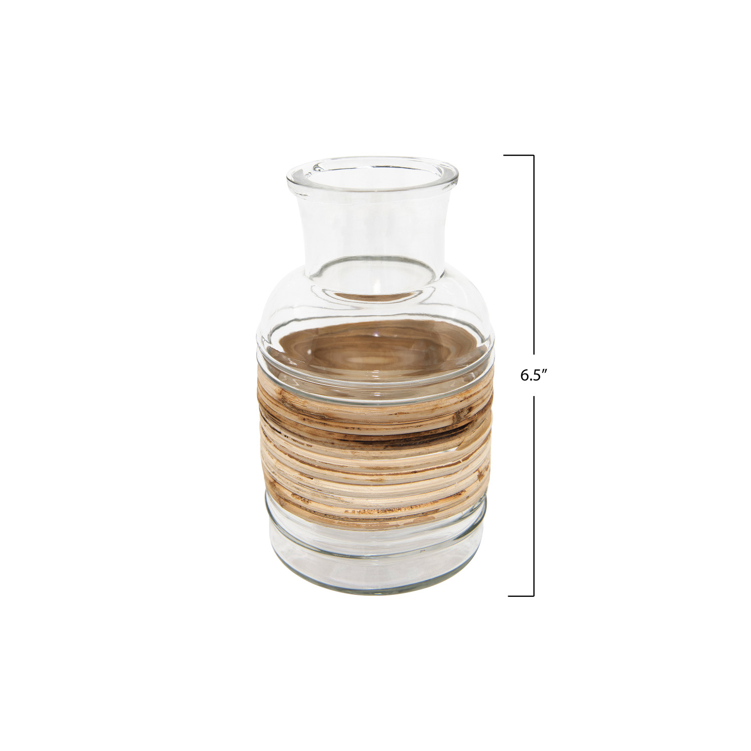 Catalog Name: 3-1/4" Round x 6-1/4"H Glass Rattan Wrapped Vase, Natural