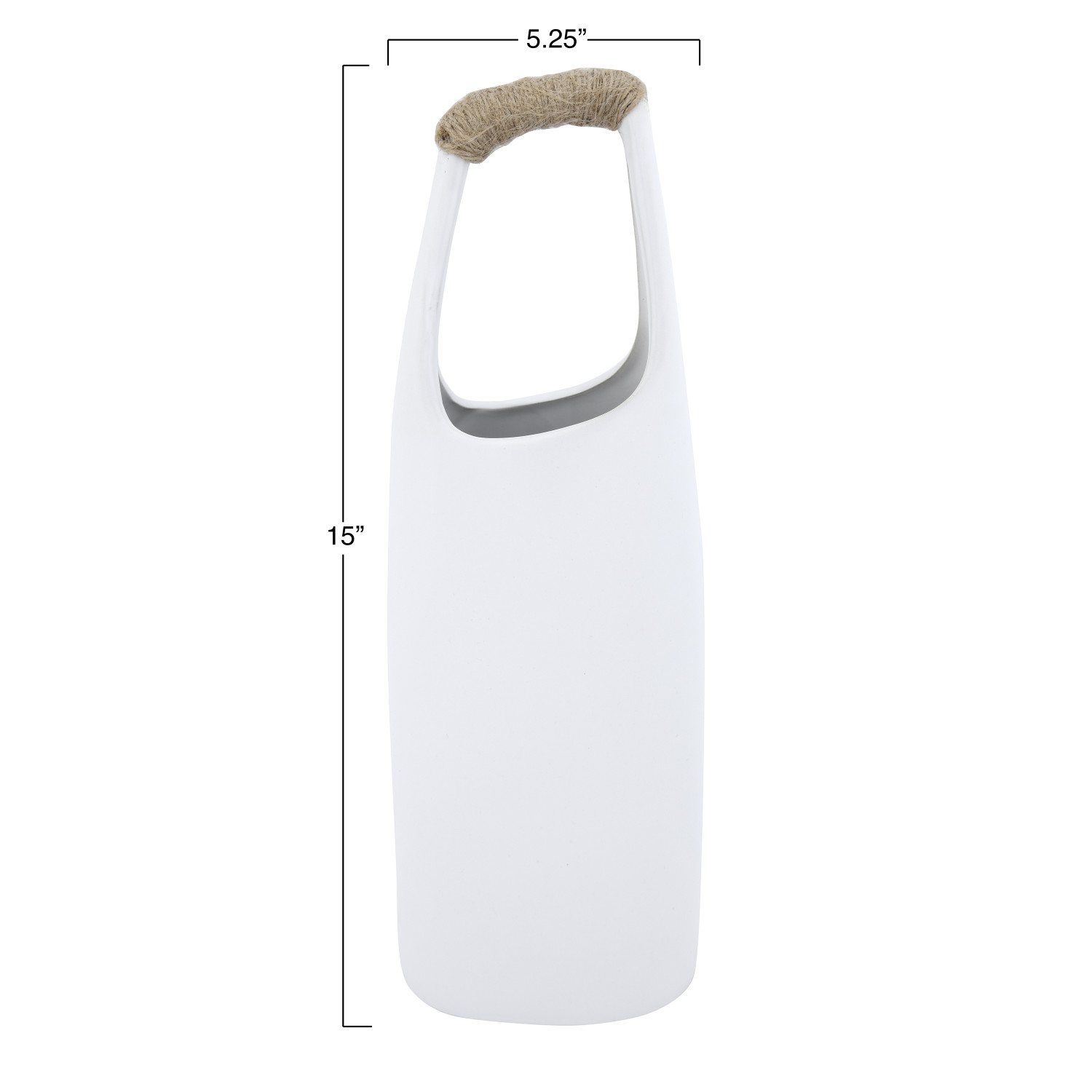 Catalog Name: 5-1/4"L x 3"W x 15-1/4"H Stoneware Vase w/ Rattan Wrapped Handle, White