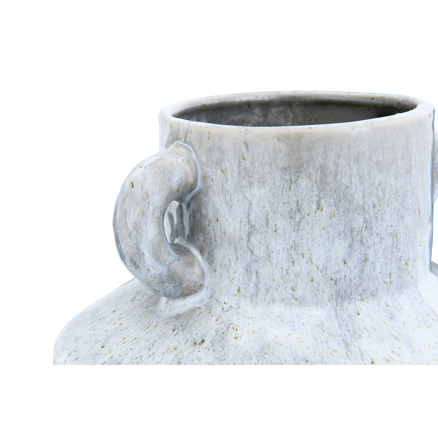 Catalog Name: 8-3/4" Round x 8"H Stoneware Vase w/ Handles, Reactive Glaze, White (Each One Will Vary)