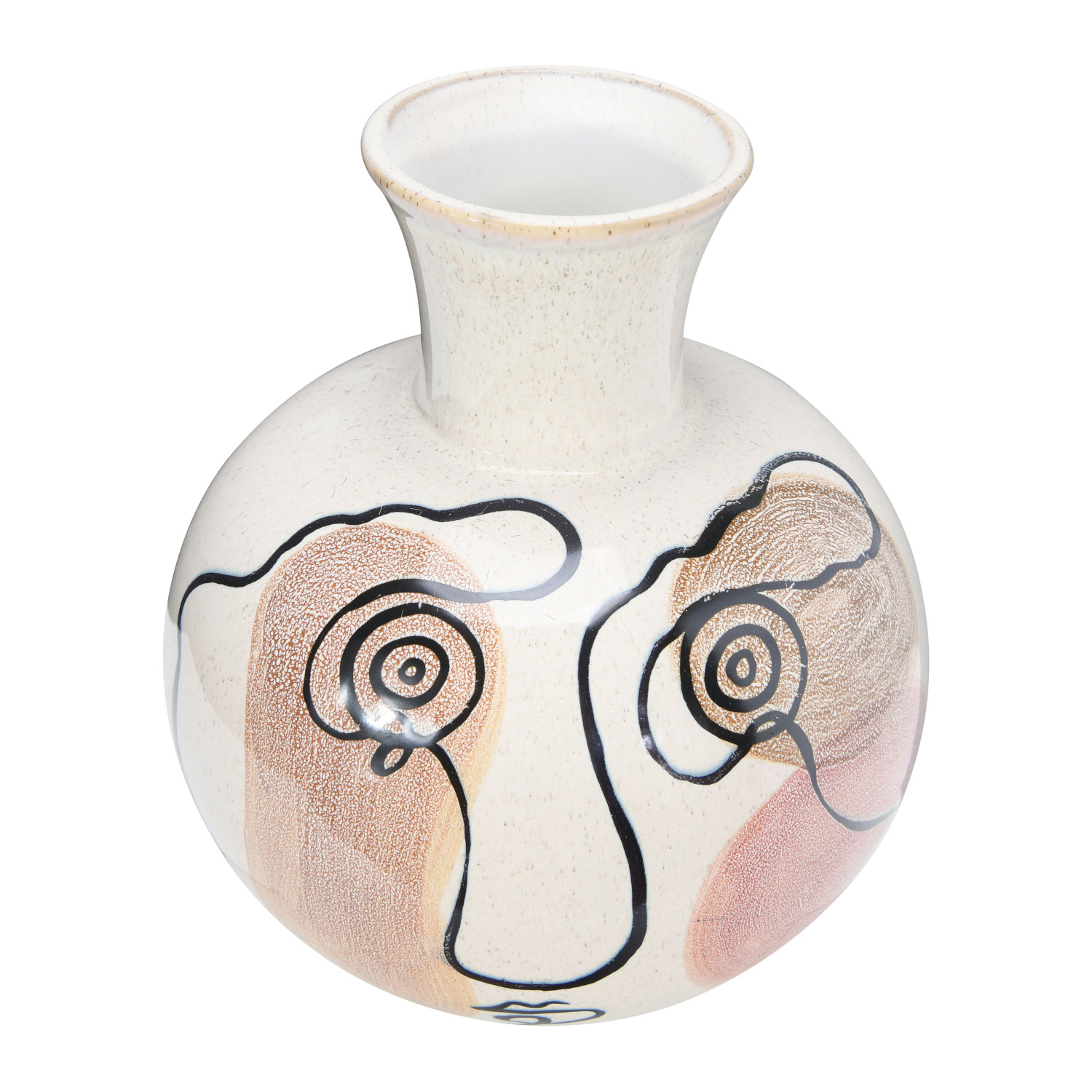 This unique vase is the perfect addition to any boho home. This beautiful hand painted stoneware vase has a round shape, and a unique face on it. This vase looks great with either real or faux florals, and adds a pop of style to any type of neutral room.