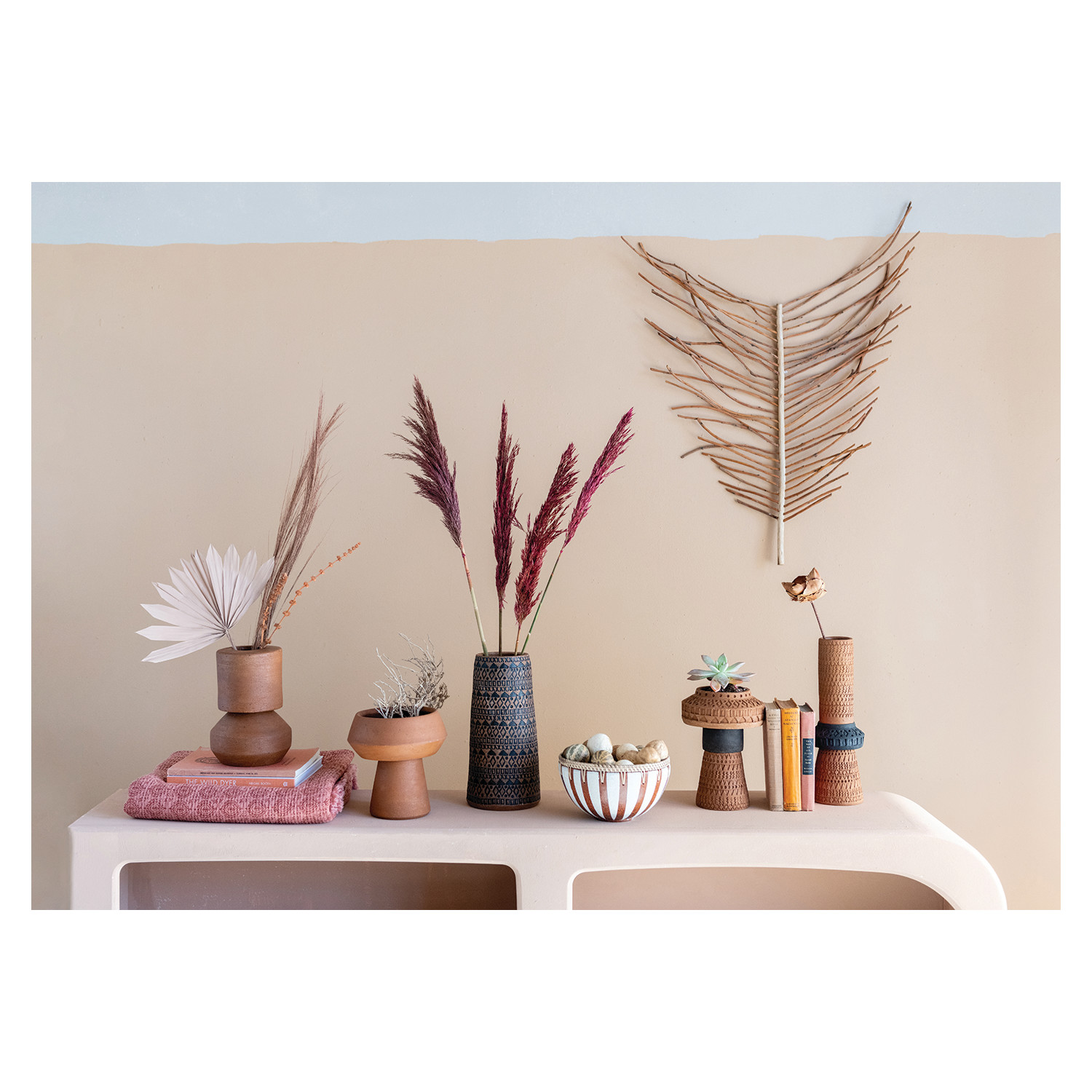 This simple and sleek vase is the perfect partner to florals. Handmade, this terracotta vase features a simple natural color with a sleek design. Easily fill with dried pampas grass for a boho home, or fresh blooms for a bright decoration.