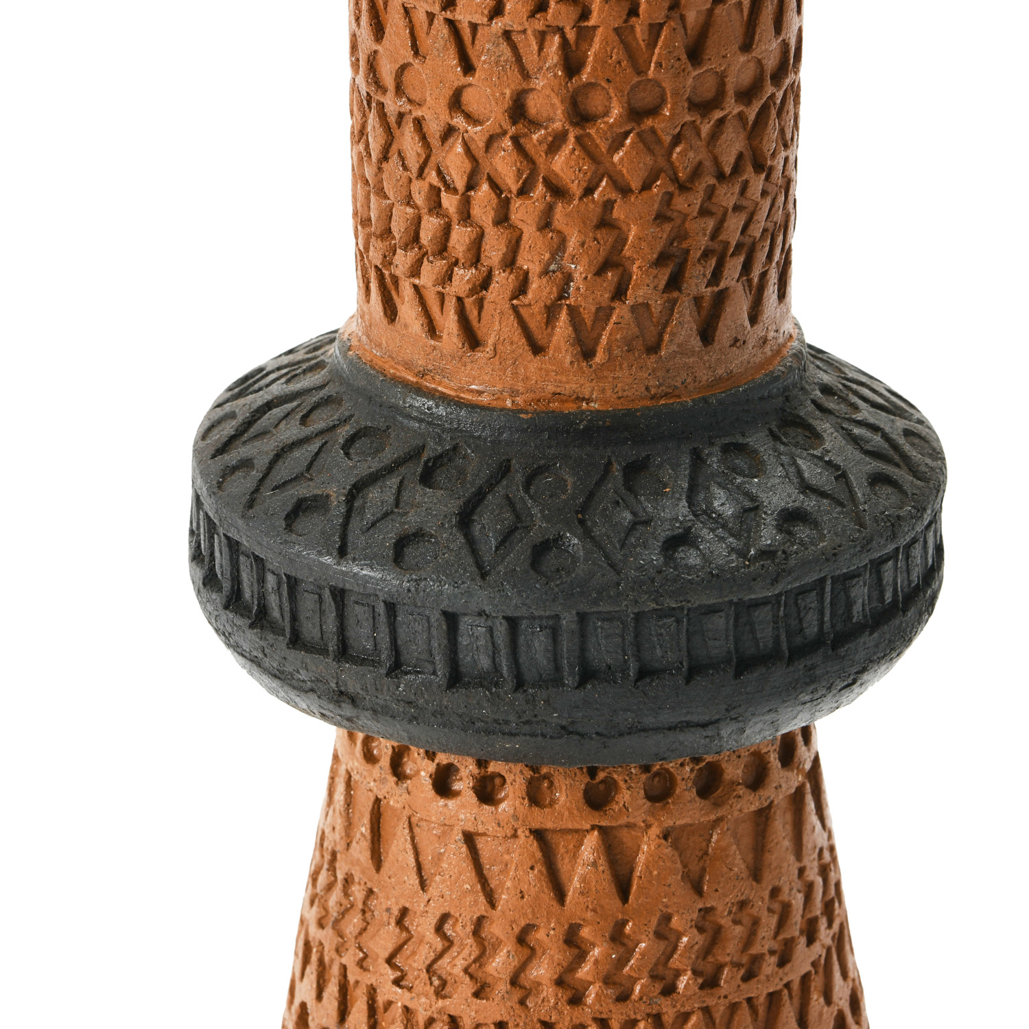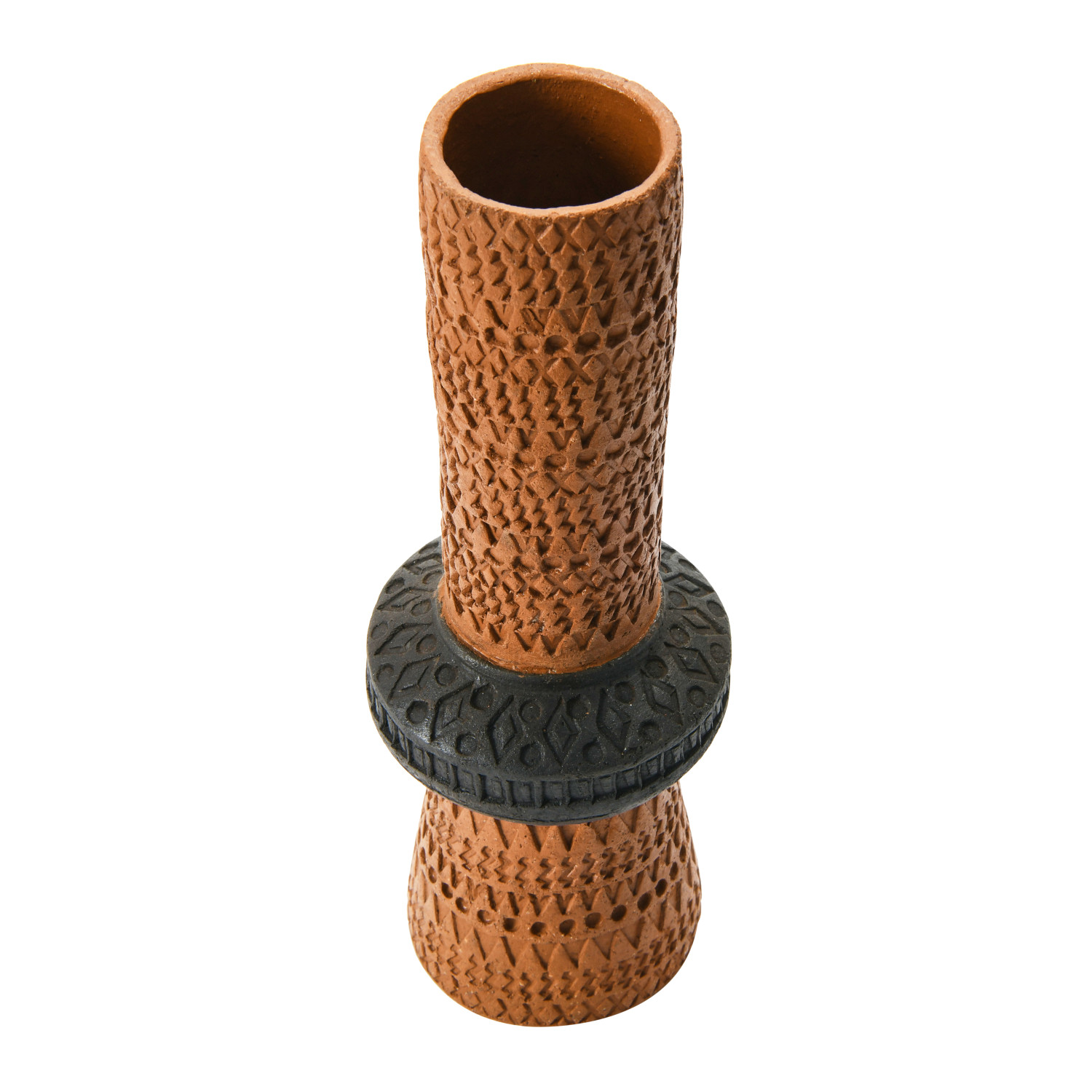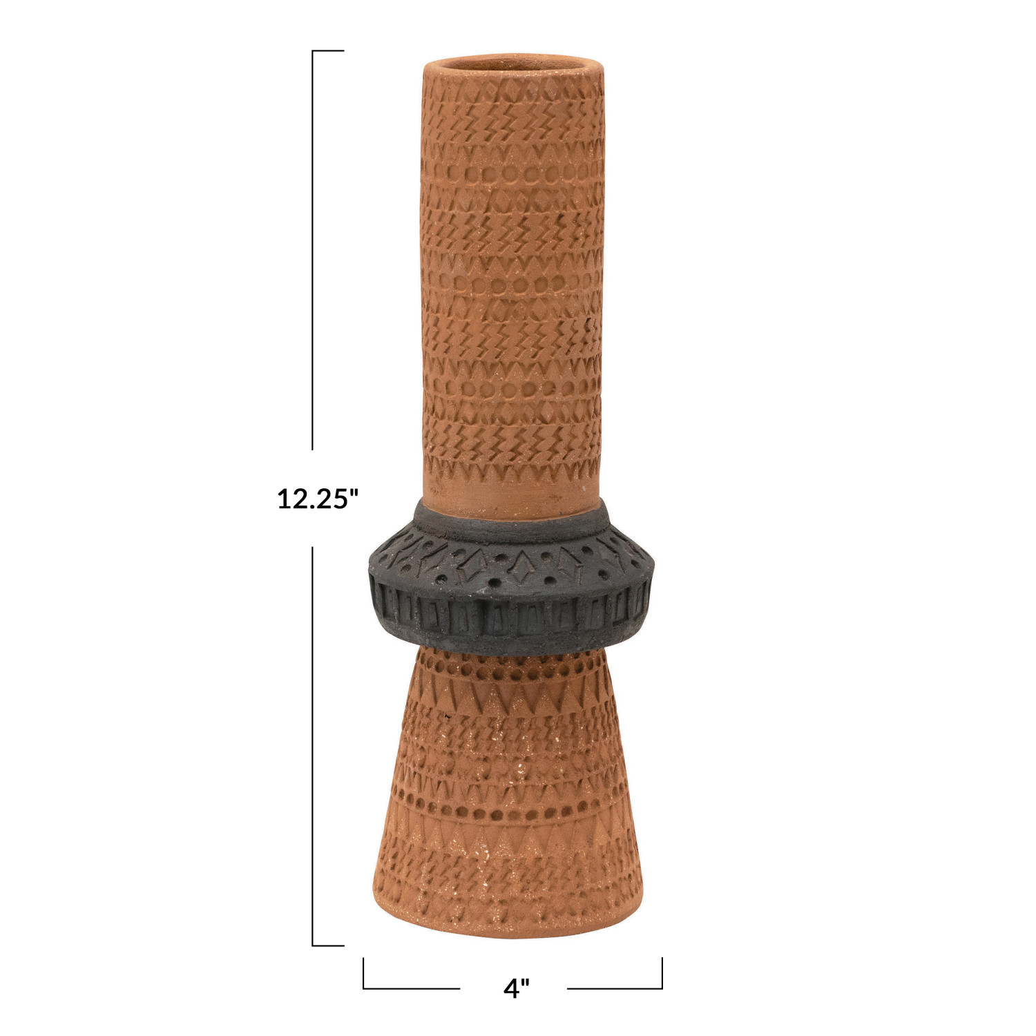 Catalog Name: 4" Round x 12-1/4"H Handmade Debossed Terra-cotta Vase, Natural & Black