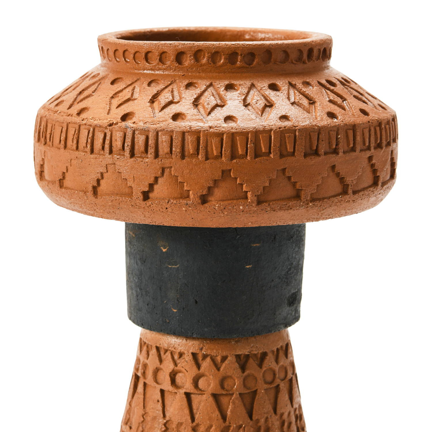 Catalog Name: 6" Round x 9"H Handmade Debossed Terra-cotta Footed Vase, Natural & Black