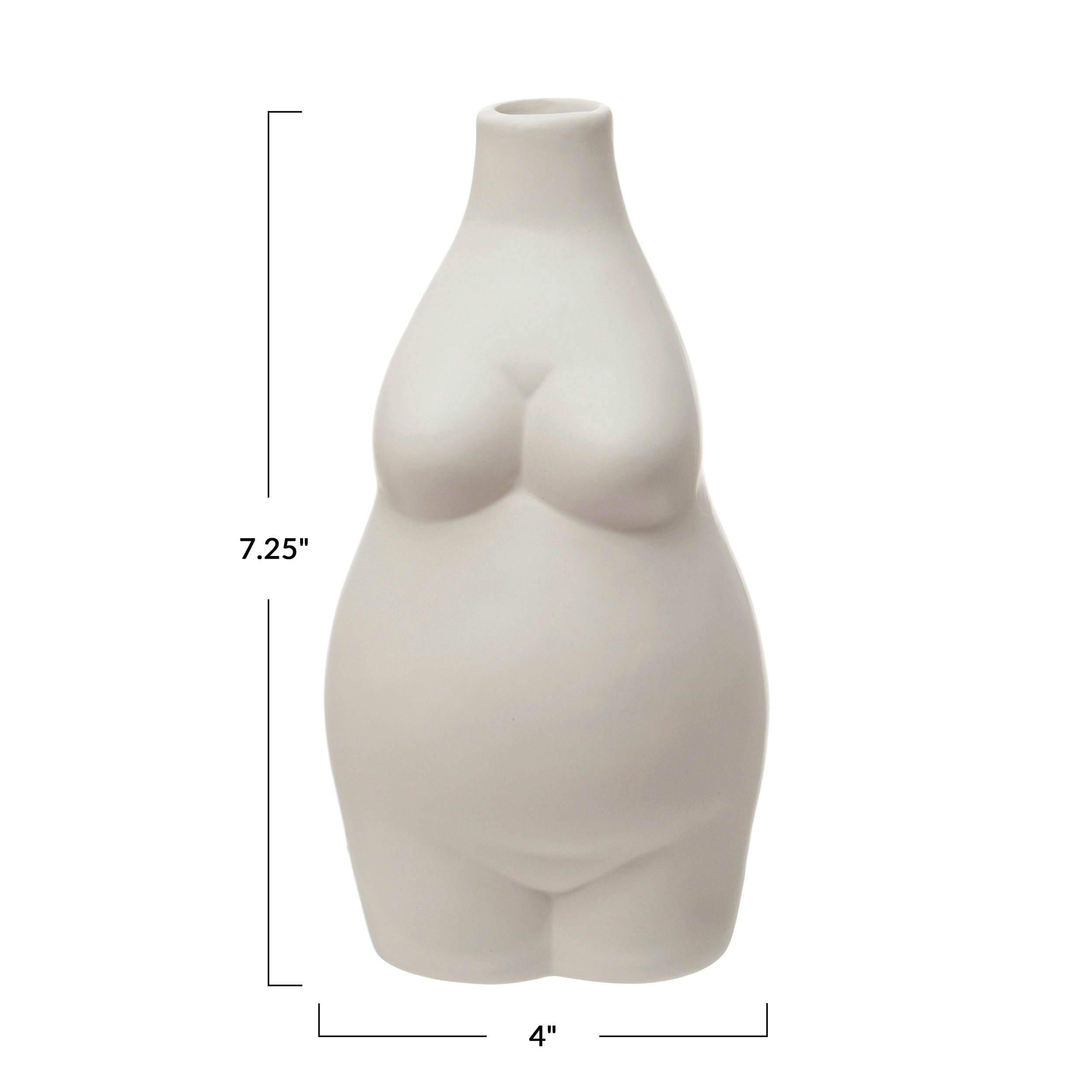 Catalog Name: 4"L x 3-3/4"W x 7-1/4"H Stoneware Body Vase, Matte White