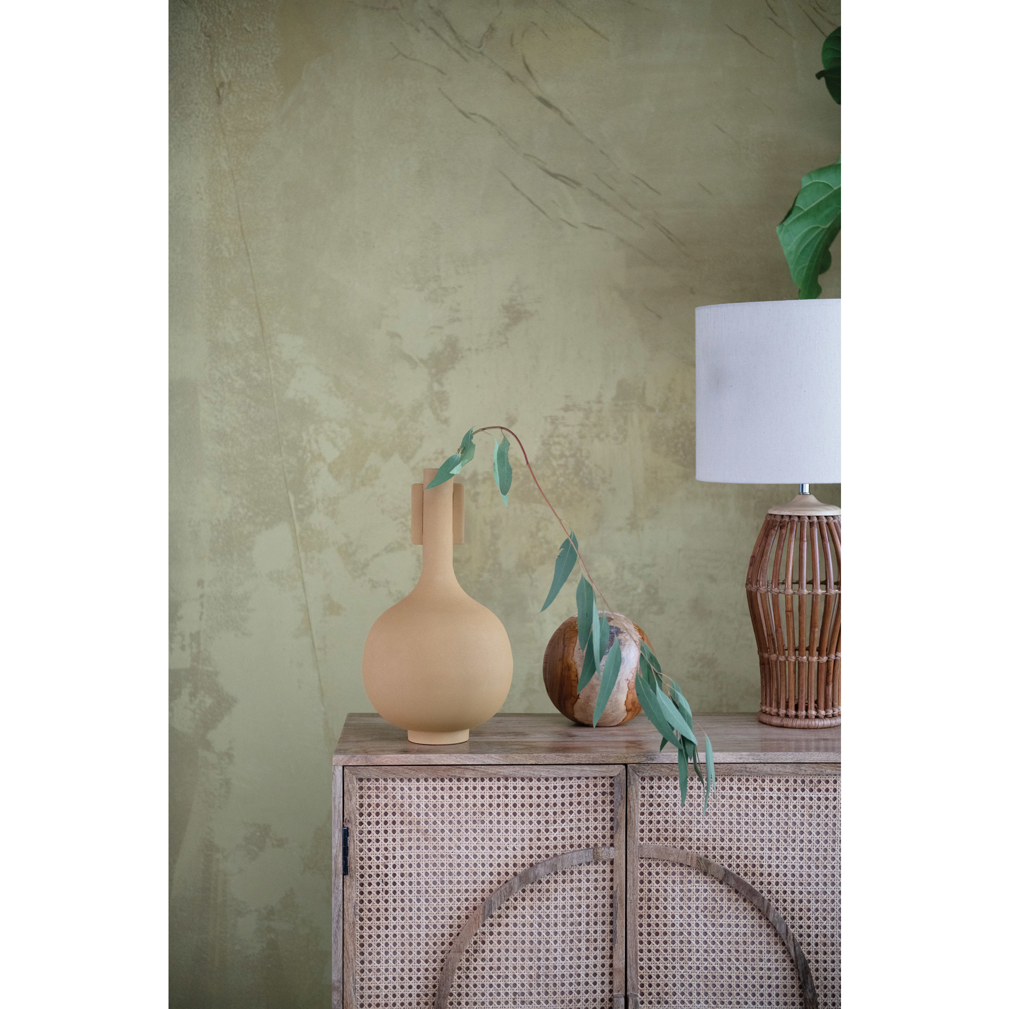 Catalog Name: 9-3/4" Round x 18-1/4"H Textured Metal Vase, Matte Mustard Color