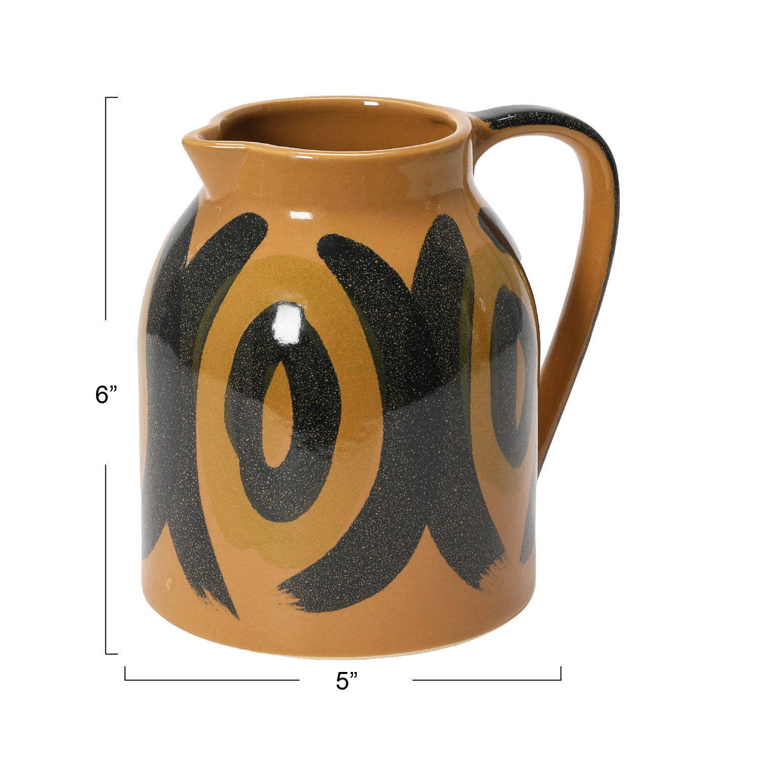 Catalog Name: 6-1/4"L x 5"W x 6-1/4"H Decorative Hand-Painted Stoneware Pitcher/Vase, Brown & Black (Each One Will Vary)