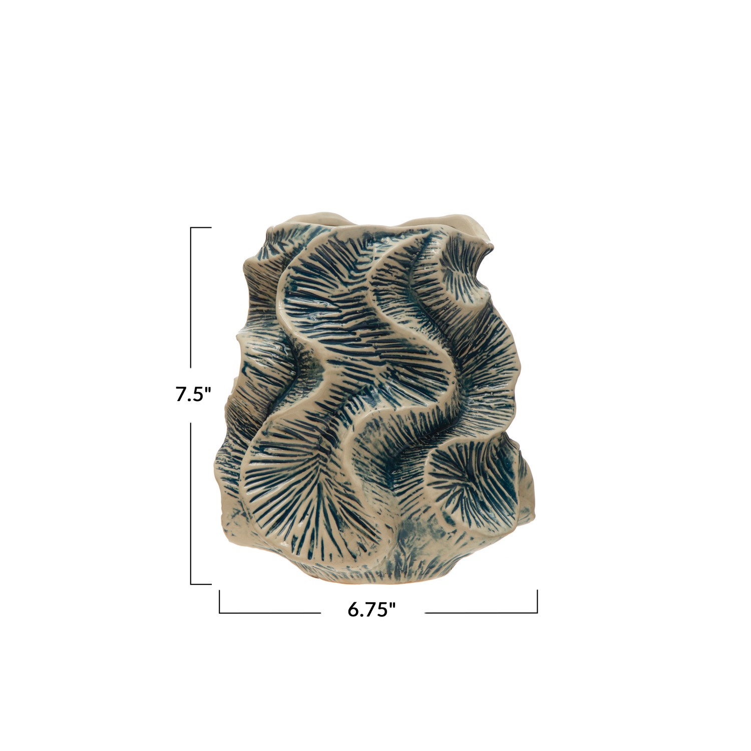 Catalog Name: 6-3/4" Round x 7-1/2"H Textured Stoneware Organic Shaped Vase, Reactive Glaze, Blue (Each One Will Vary)