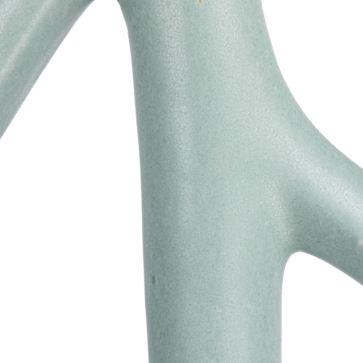 This green stoneware sculptural vase is a beautiful and unique addition to any home décor. The simple, cylindrical shape of the vase is both elegant and understated, making it a versatile addition to any home decor. The muted green color is both calming and sophisticated, and it would look great in a variety of styles, from traditional to modern. The teardrop handles add a touch of elegance and sophistication to the vase. They are made of the same green ceramic as the vase and are shaped like teardrops, which gives them a graceful and delicate appearance. The handles also make the vase easy to grip and move, which is helpful when filling or cleaning it. The vase measures 9.5 inches long, 3 inches wide, and 14.75 inches tall. This size makes it a perfect centerpiece for a dining table or coffee table. It would also look great on a shelf or mantle. This green stoneware sculptural vase is versatile, elegant, and functional, making it a perfect choice for any home. A stunning green vase with a simple, cylindrical shape and teardrop handles, made of durable stoneware that shines in simple spaces. This versatile vase would look great in a variety of home décor styles, from traditional to modern. Use it to hold dried flowers or twigs that match the season, or just leave it empty as a beautiful accent piece. Made of stoneware.