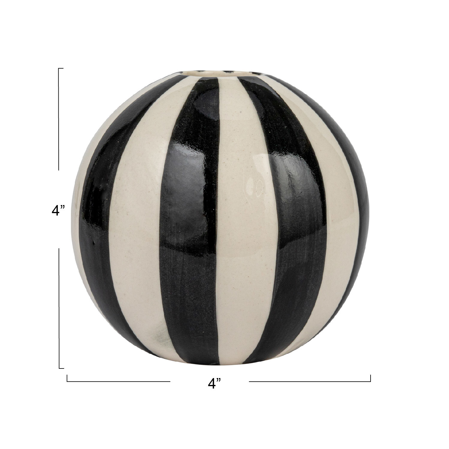 Catalog Name: 4-1/4" Round x 3-3/4"H Stoneware Striped Ball Vase, Black & White