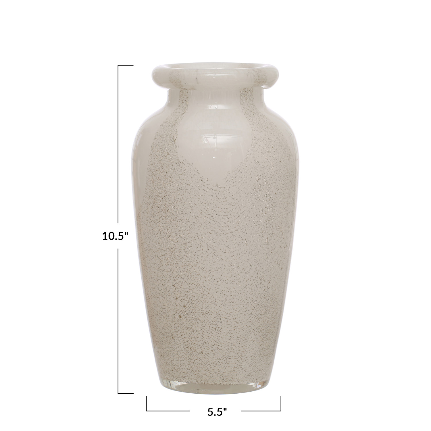 Add some style and personality to any home or office with these stunning vases. These vases come in various shapes, sizes, materials, and designs, offering a wide range of options to suit any preference and decor. Whether looking for a simple and elegant ceramic vase, a colorful and whimsical glass vase, a rustic and natural wood vase, or a modern and sleek metal vase, there is something for everyone in this collection. These vases are perfect for displaying flowers, plants, candles, or other decorative items, or simply as standalone accents that will enhance the beauty and charm of any space. Crafted from high-quality art glass with a unique shape and texture that adds a touch of contemporary sophistication to any space, this stunning round vase showcases a captivating blend of white and grey hues that create a beautiful and artistic display. With its sleek design and subtle color palette that make it a versatile piece that complements various interior themes, this art glass vase is a perfect addition to modern, minimalist, or eclectic home decor styles and effortlessly enhances the visual appeal of any living space whether placed on a mantel, displayed on a shelf, or used as a centerpiece. With a 2.5-inch round opening that provides a perfect size for arranging and showcasing any favorite flowers or botanicals, this art glass vase not only captivates with its visual beauty but also serves as a functional piece that ensures stability and confidence for any floral arrangements. Made of glass.