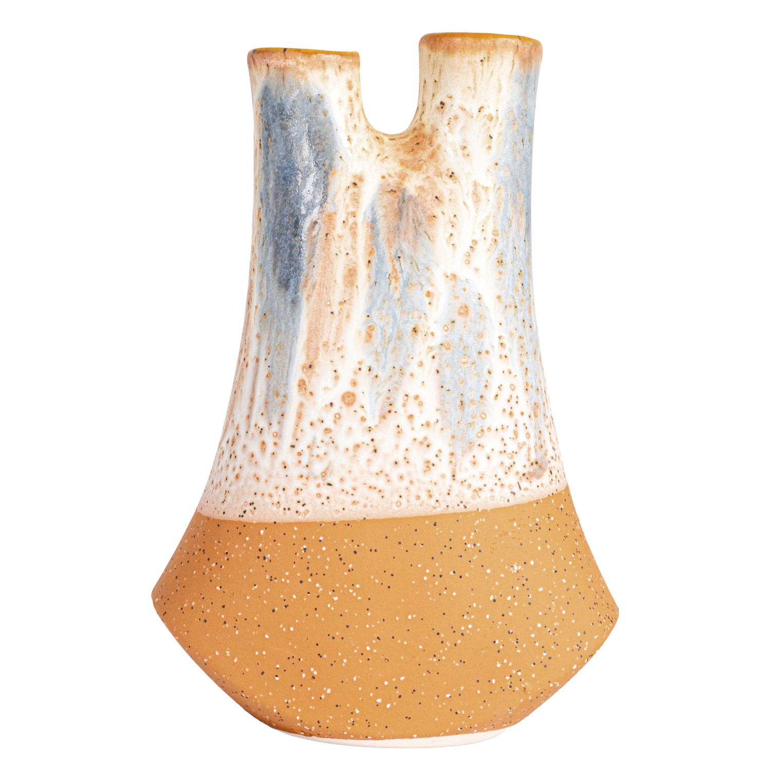 Catalog Name: 5-1/4"L x 3-1/2"W x 7-3/4"H Stoneware Vase w/ 2 Openings, Reactive Glaze, Multi Color (Each One Will Vary)