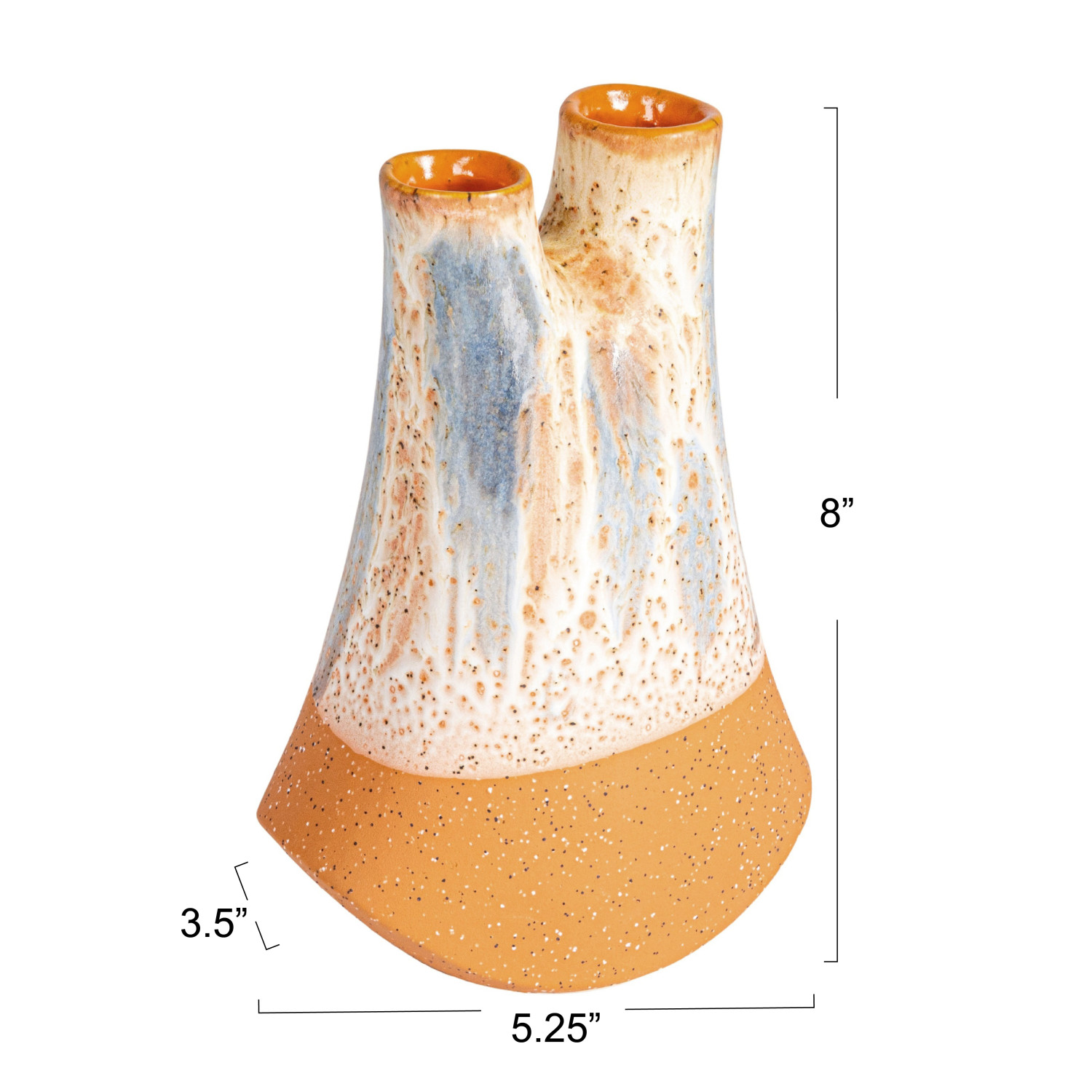 Stoneware Vase w/ 2 Openings, Reactive Glaze (Each One Will Vary)