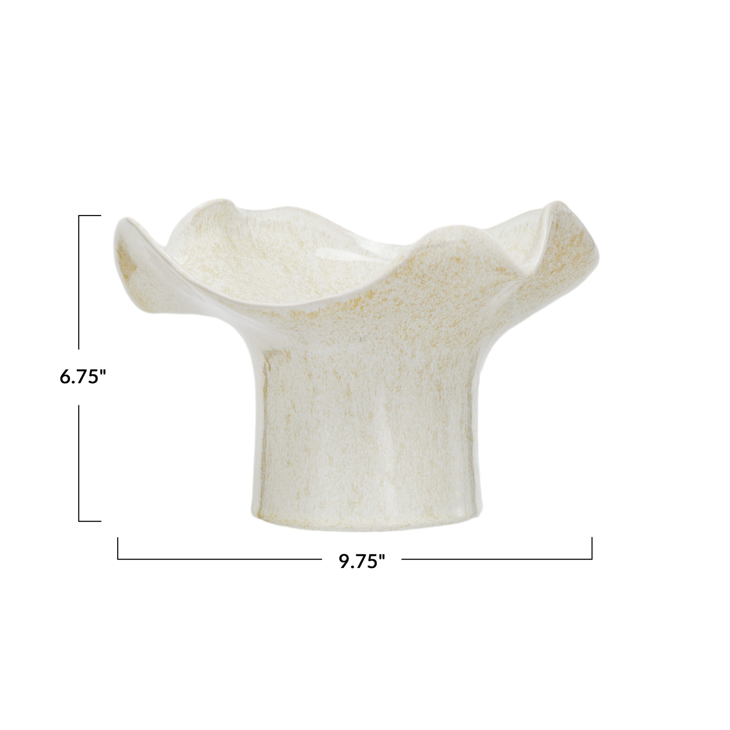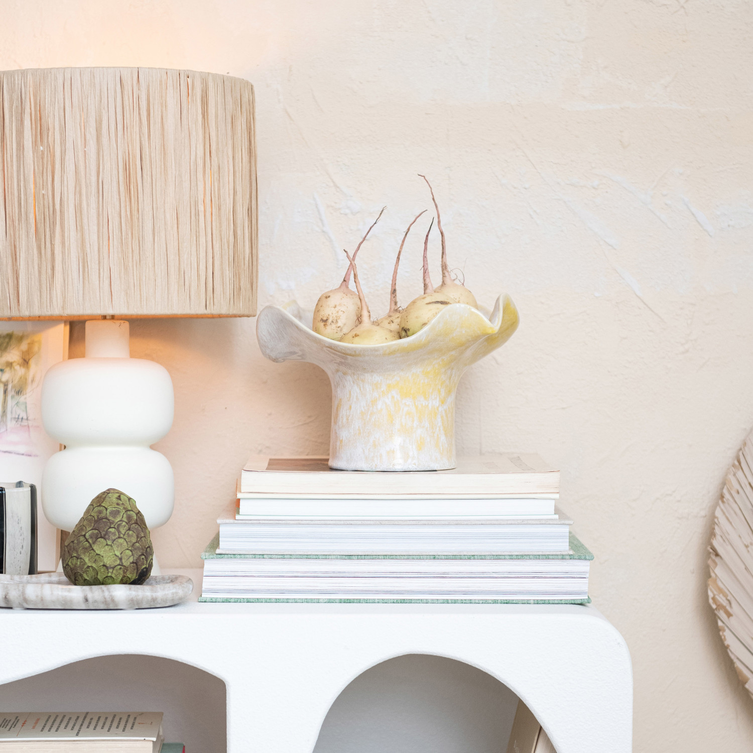 Catalog Name: 9-3/4" Round x 6-3/4"H Stoneware Ruffled Footed Bowl, Reactive Glaze, Yellow (Each One Will Vary)