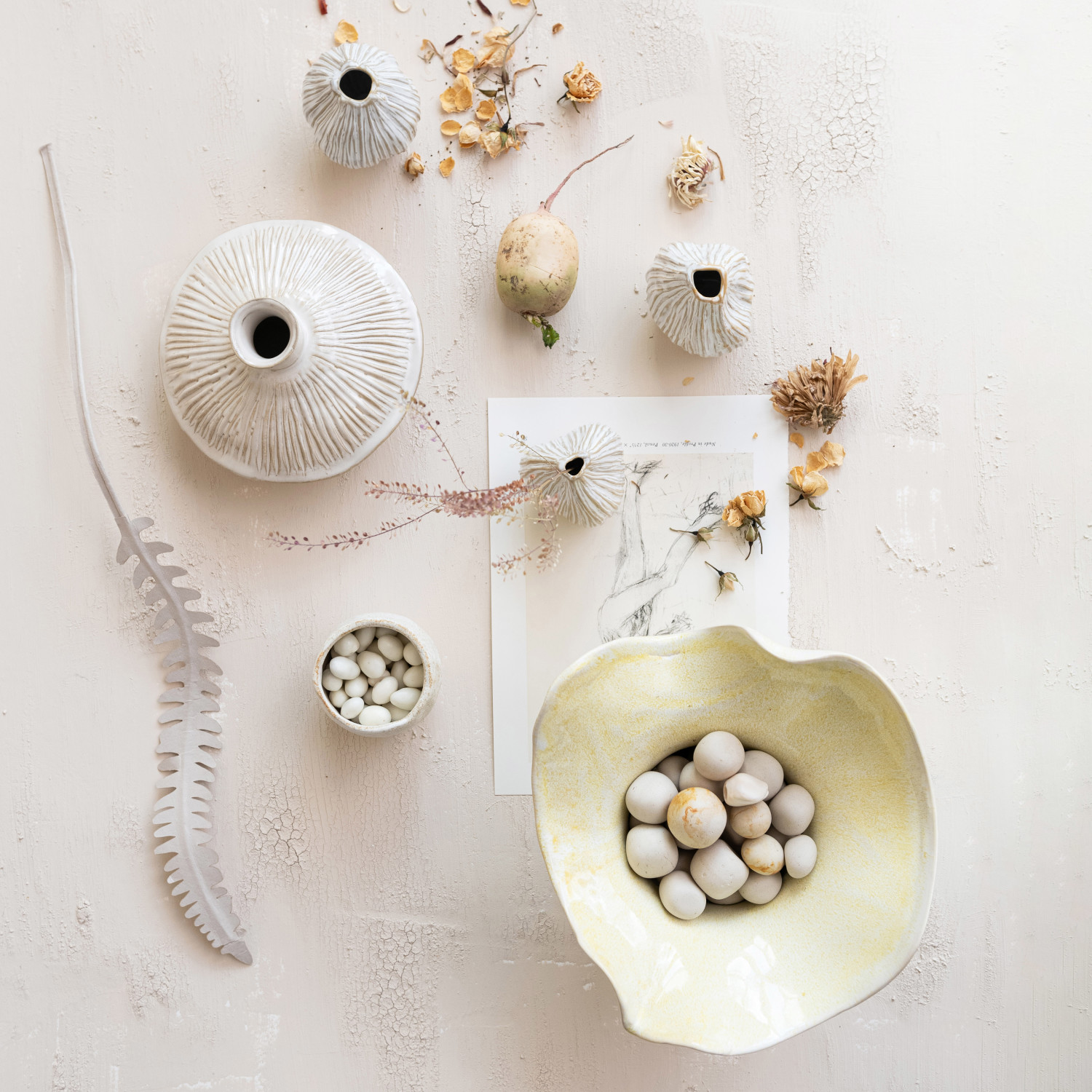 This Sunbeam Stoneware Planter Bowl stands out with its generous 9.75-inch diameter and 6.75-inch height, perfect for showcasing a lush array of greenery. The bowl's sunny yellow color is brought to life with a reactive glaze, ensuring that each piece has its own distinct flair. Resting on sturdy feet, the planter elevates the plants, allowing them to bask in their full glory. The organic shape adds a touch of natural elegance, making it a versatile choice for any interior design scheme. Whether filled with succulents or a vibrant fern, this planter bowl is a cheerful statement piece that brightens any room it graces.