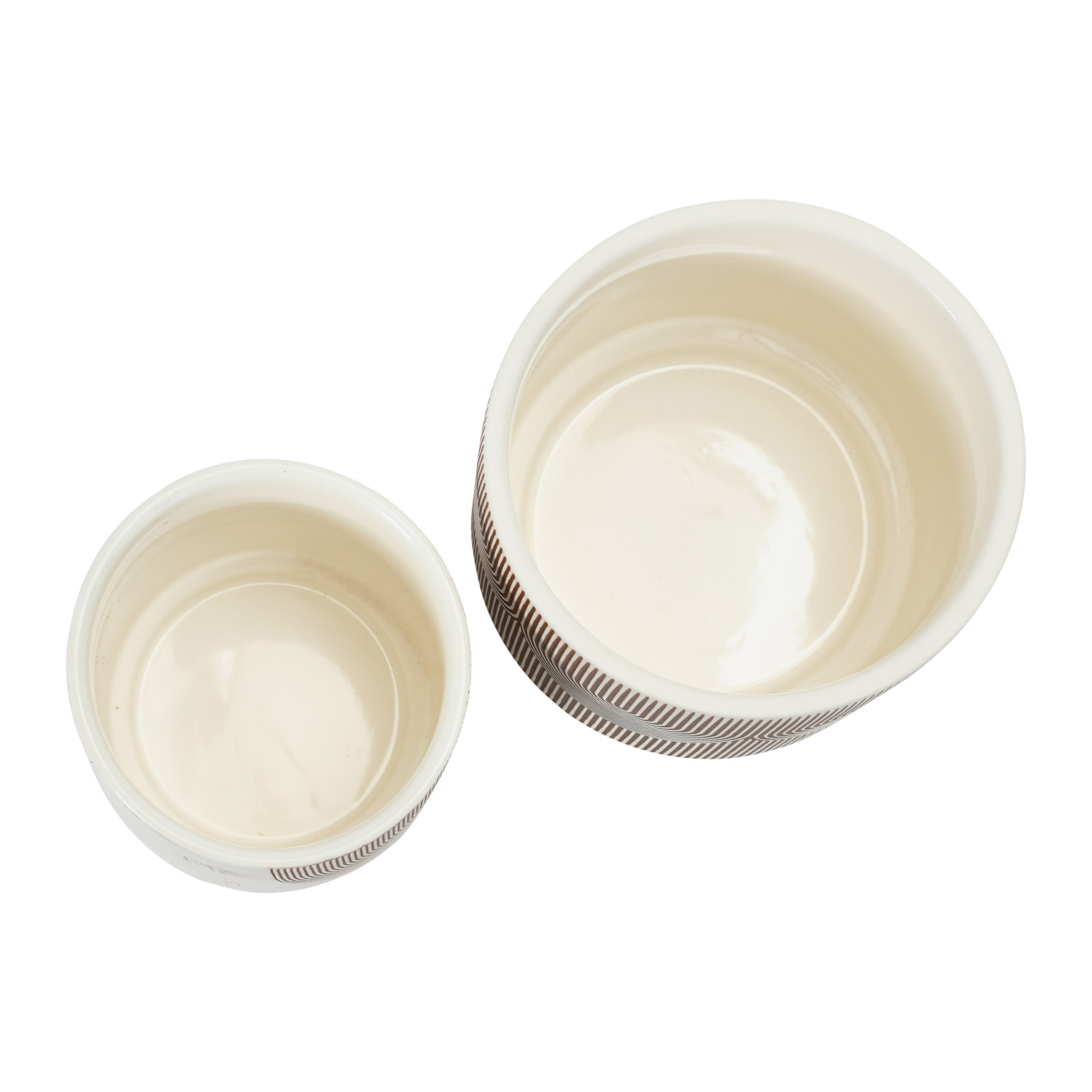 Catalog Name: 5-1/2" Round x 5-1/4"H Textured Stoneware Planter w/ Pattern, Brown & Cream Color (Holds 4" Pot)