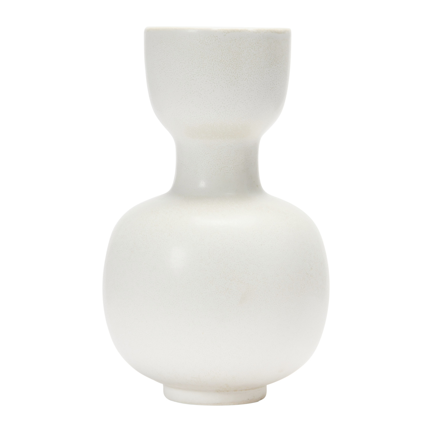 Catalog Name: 7-1/4" Round x 11-1/2"H Stoneware Vase, Reactive Glaze, Matte Cream Color (Each One Will Vary)