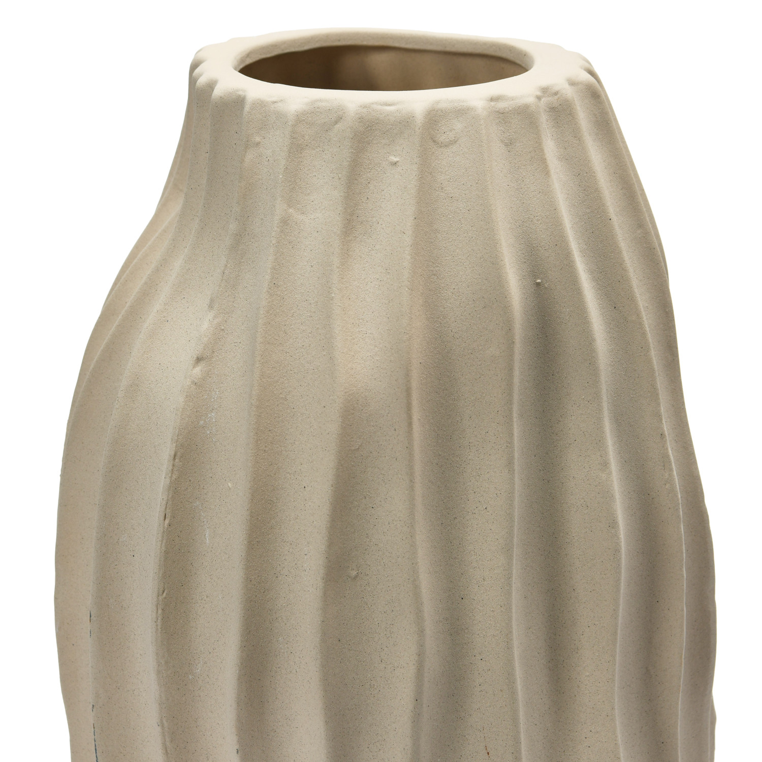 A stunning stoneware vase with an abstract fluted design and a sand finish that adds texture and warmth to any space. This vase is ideal for complementing a rustic, farmhouse, or coastal style home décor with its natural and earthy tones. Display this stylishly versatile vase as a sophisticated mantel accent or part of an inviting dining table centerpiece. Made of stoneware.