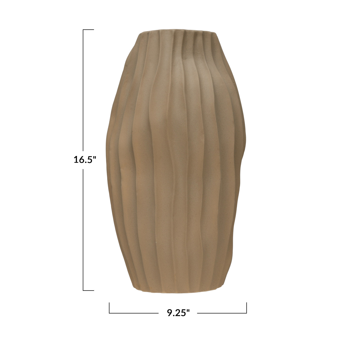 Catalog Name: 9-1/4" Round x 16-1/2"H Stoneware Pleated Vase, Sand Finish, Putty Color, Truck Ship