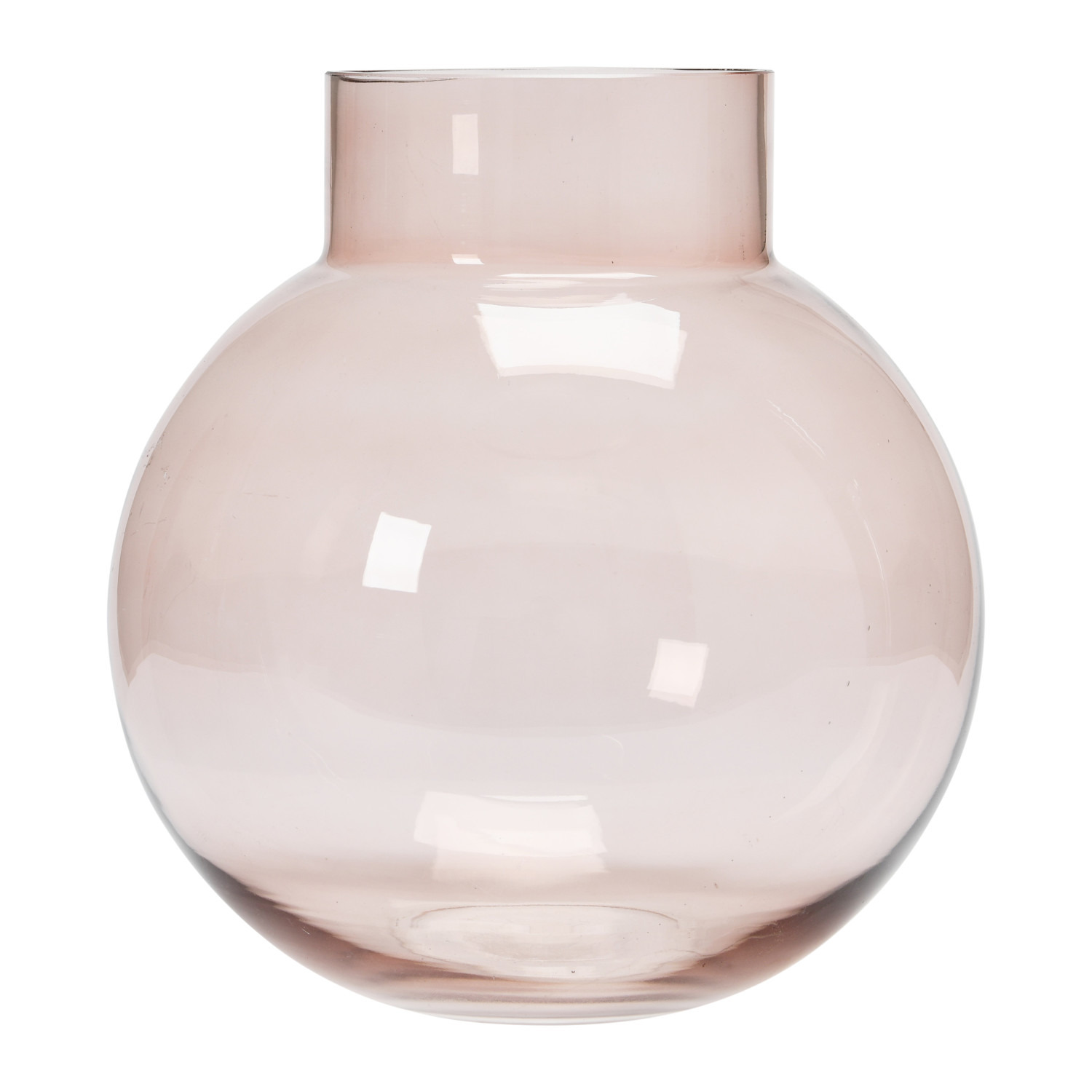 Catalog Name: 9-1/2" Round x 9-3/4"H Glass Vase, Rose Color