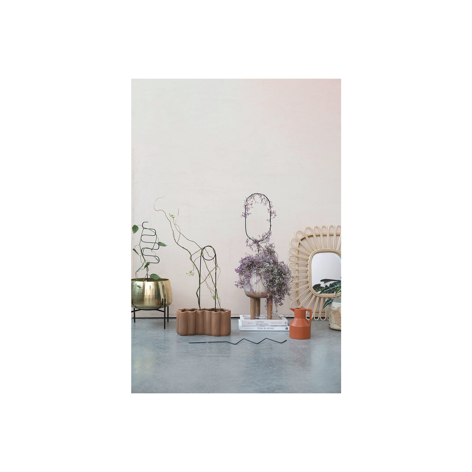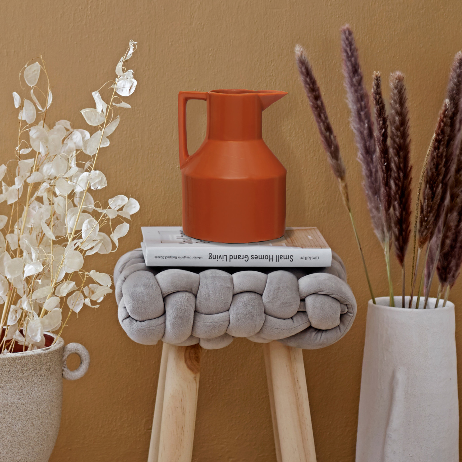 This sleek, Scandinavian vase features modern stoneware construction and a stylishly functional handle. Matte sienna stoneware pitcher or vase. Display this stylishly versatile vase as a sophisticated mantel accent or part of an inviting dining table centerpiece. Made from 100% stoneware.