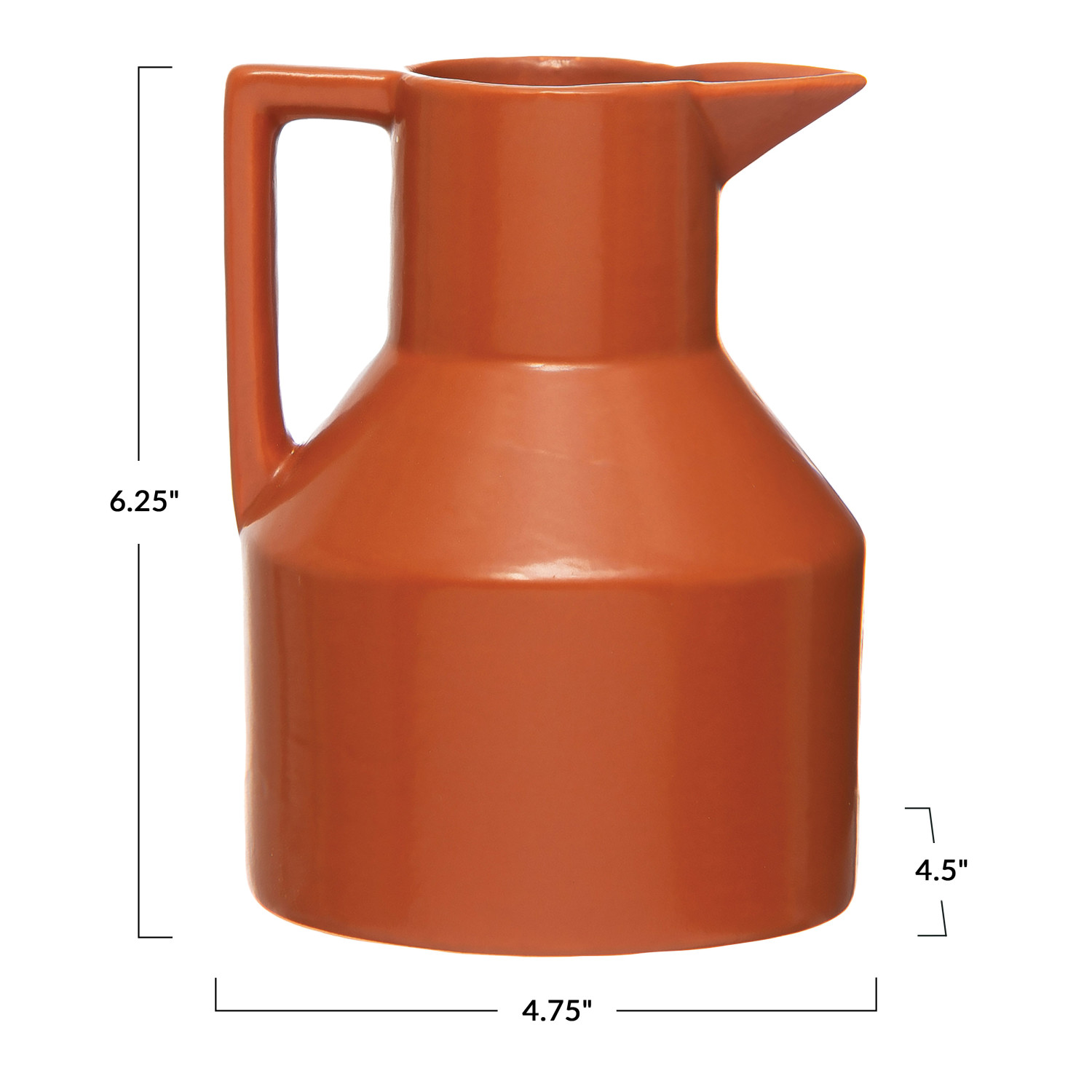 Catalog Name: 4-3/4"L x 4-1/2"W x 6-1/4"H Decorative Stoneware Watering Pitcher/Vase w/ Handle, Matte Sienna Color