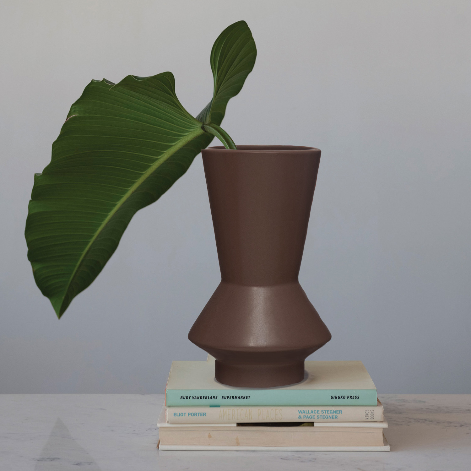 This contemporary stoneware vase showcases a sleek, sculptural silhouette. Eggplant stoneware vase. Display this stylishly versatile vase as a sophisticated mantel accent or part of an inviting dining table centerpiece. Made from 100% stoneware.
