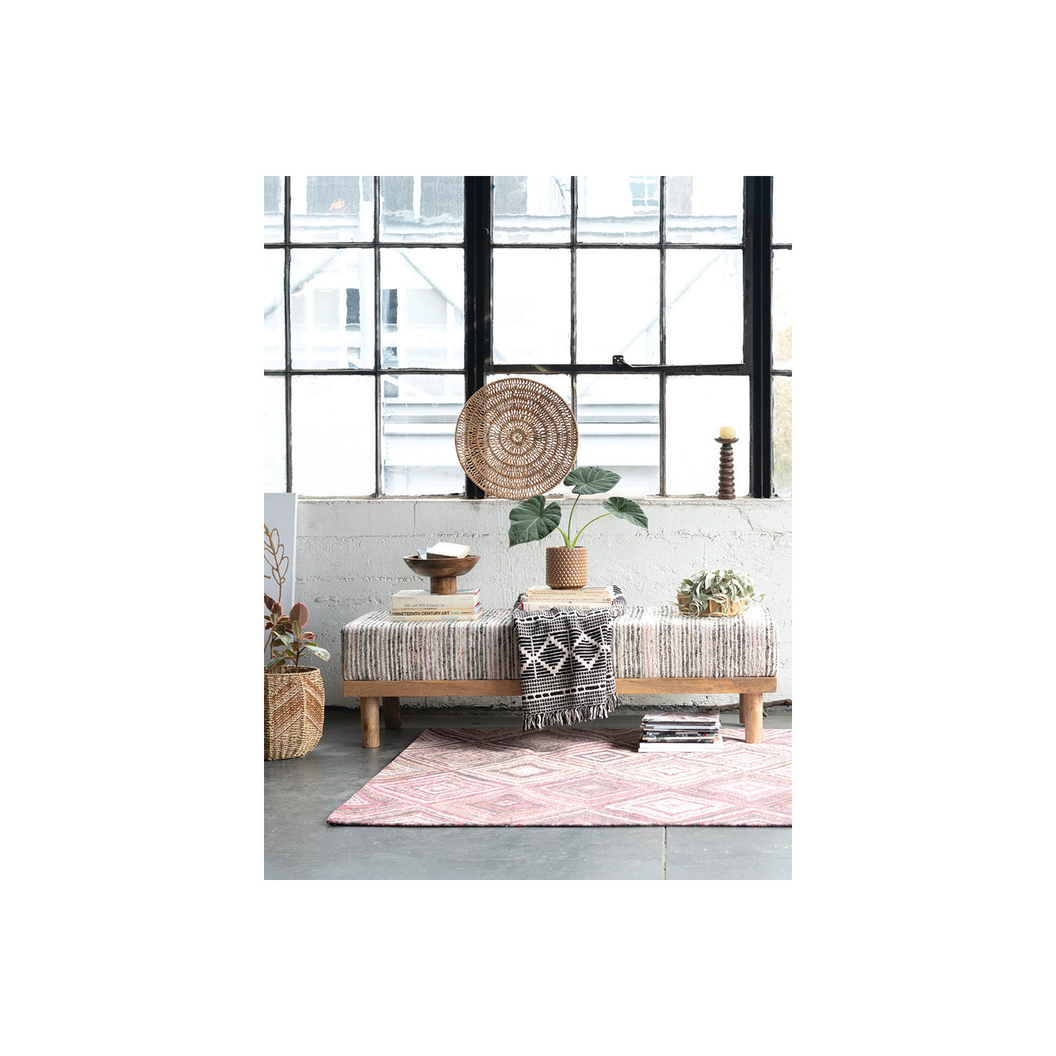 This cream colored Recycled Cotton Blend Printed Throw is a lightweight addition to any piece of furniture needing a touch of softness. The fringes are fun and stylish, while the diamond pattern gives this throw a more natural and native feel. The black and beige unique design that will blend in with most furniture's and wall colors. This throw can be machine-washed.