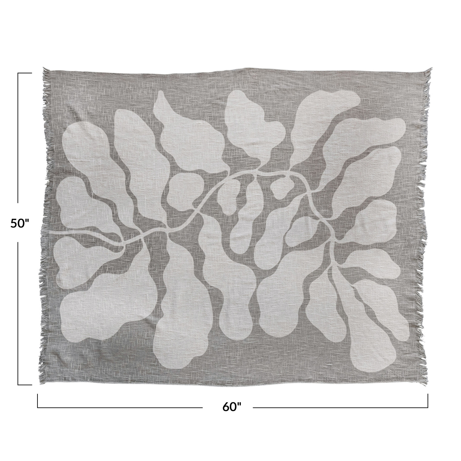 Catalog Name: 60"L x 50"W Cotton Slub Throw w/ Botanical Print & Fringe, Sage Color & Natural