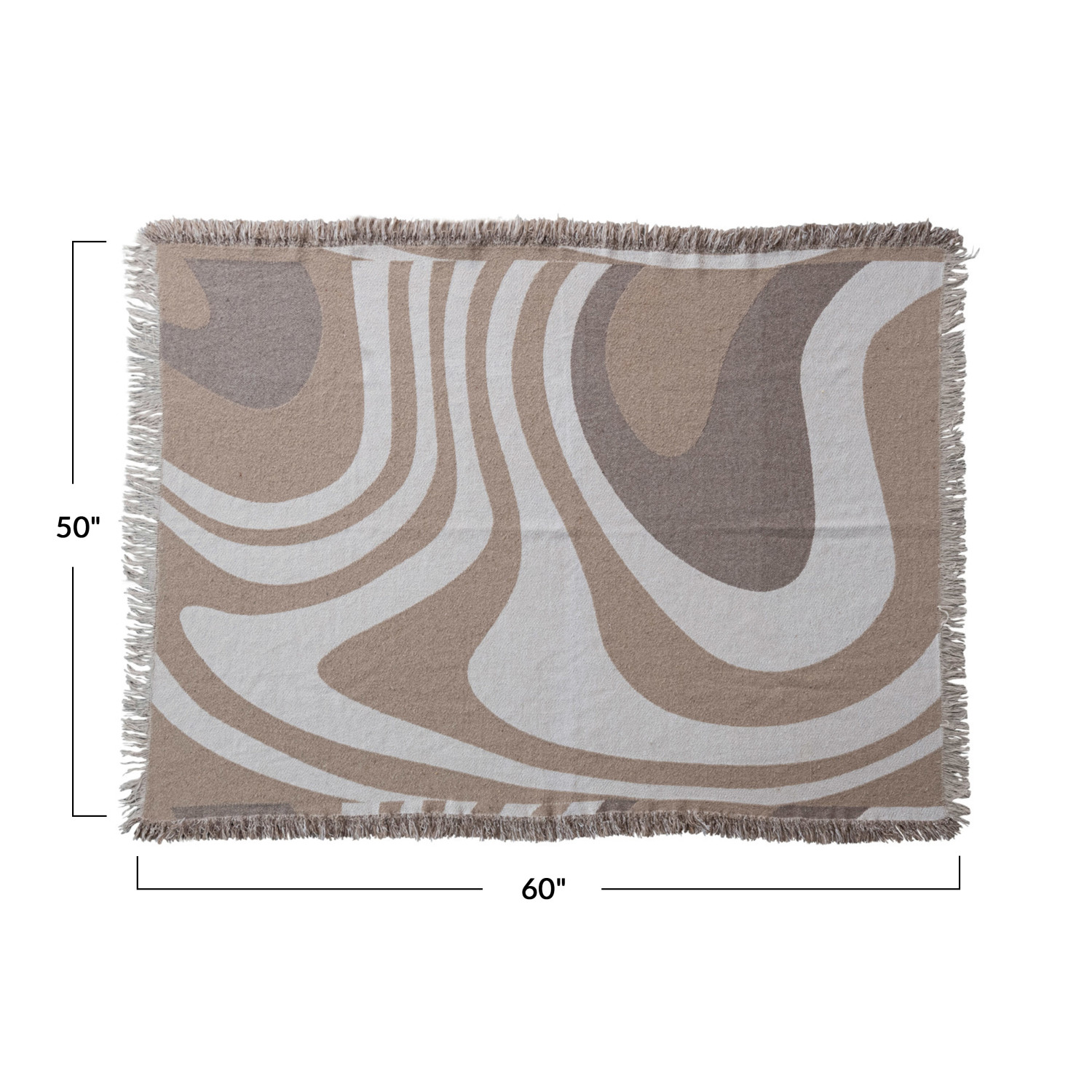 Catalog Name: 60"L x 50"W Woven Cotton Blend Jacquard Throw w/ Wave Design & Fringe, Brown & Beige