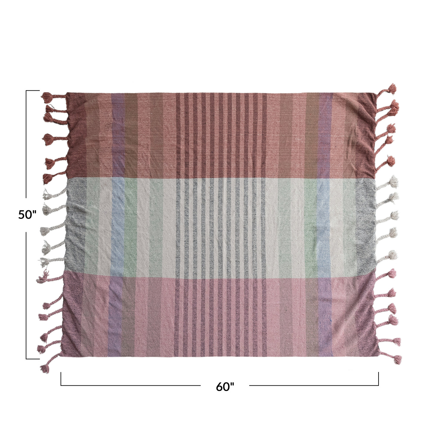 Catalog Name: 60"L x 50"W Woven Recycled Cotton Blend Throw w/ Braided Fringe, Multi Color Madras Plaid