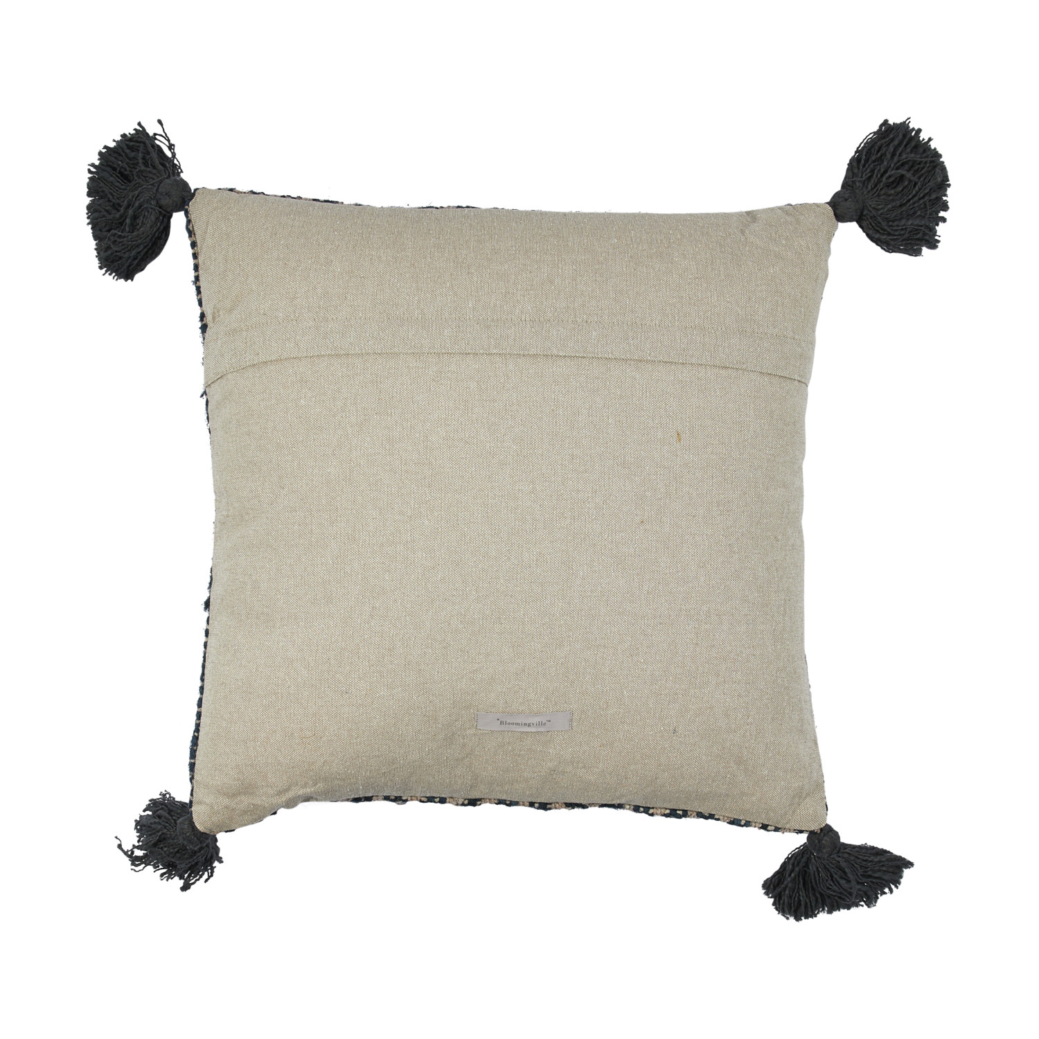 This rustic throw pillow cover features textural woven cotton construction with stripes and decorative tassels. Black and tan woven cotton throw pillow with stripes and tassels; Natural cotton encasement on back. Express your constantly evolving style with the simple addition of this eye-catching pillow. Removable cotton throw pillow cover with polyester insert; Back zipper with hidden flap; Spot clean only.