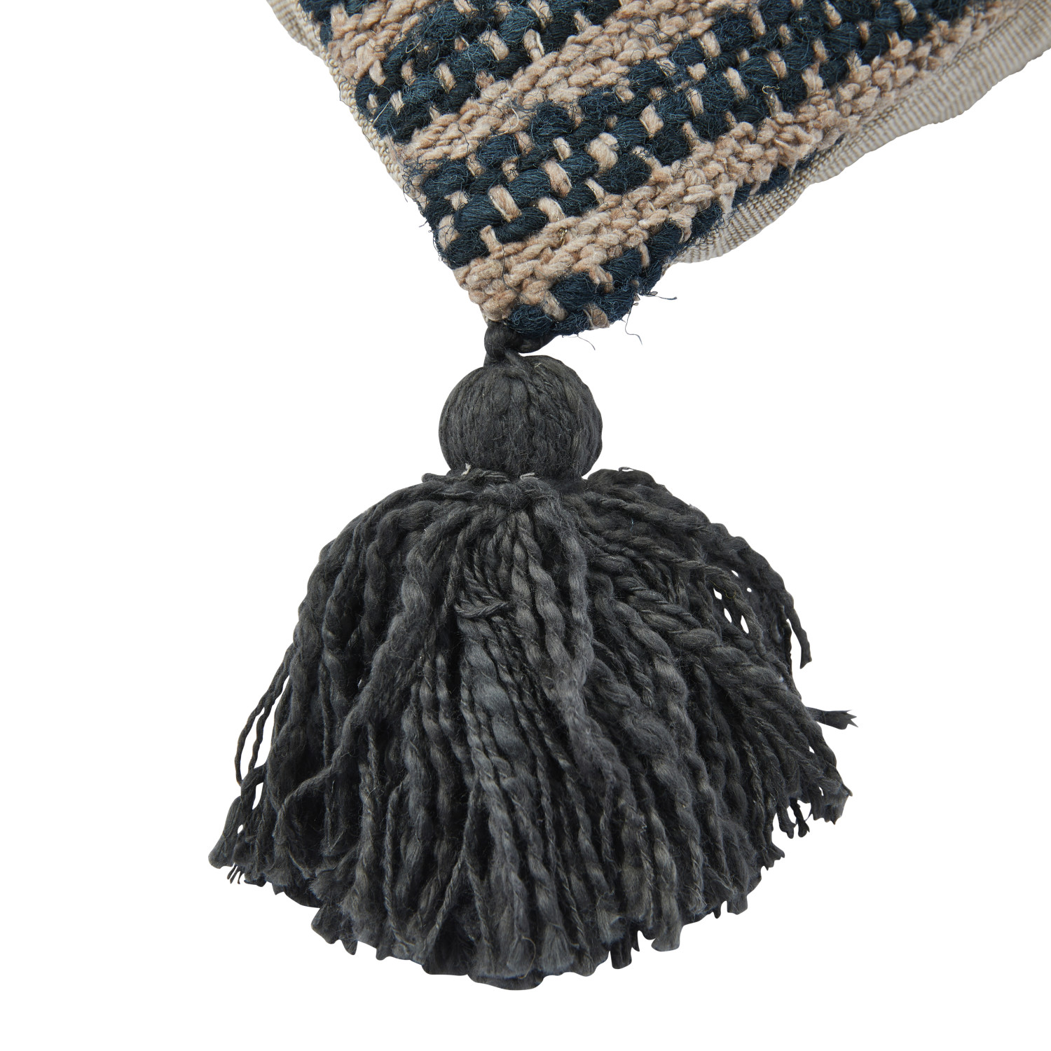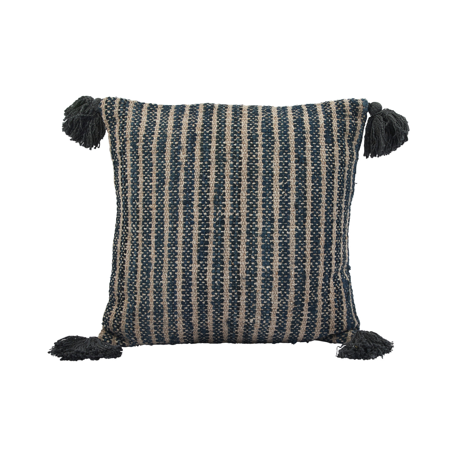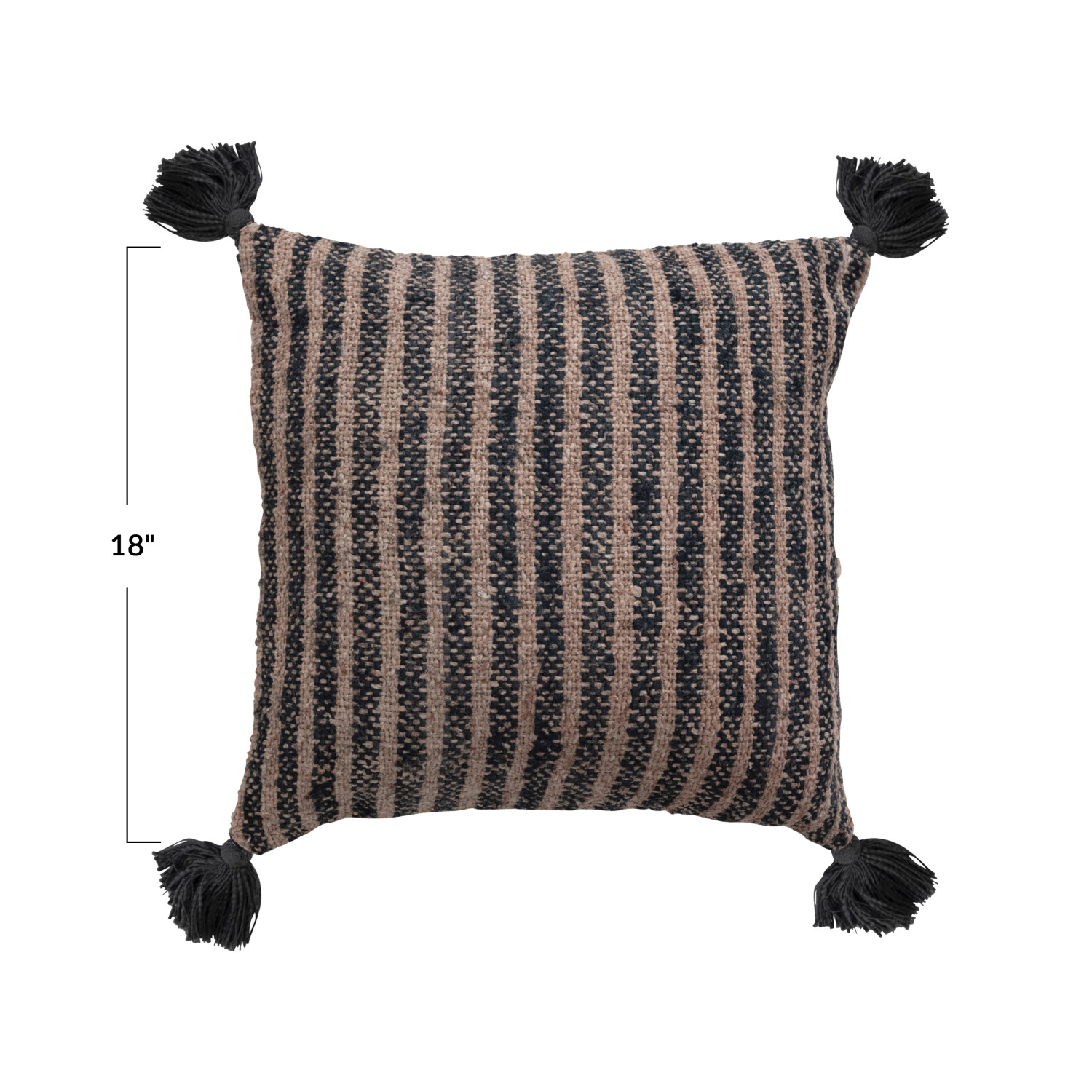 Catalog Name: 18" Square Woven Cotton Striped Pillow w/ Tassels, Black & Tan Color