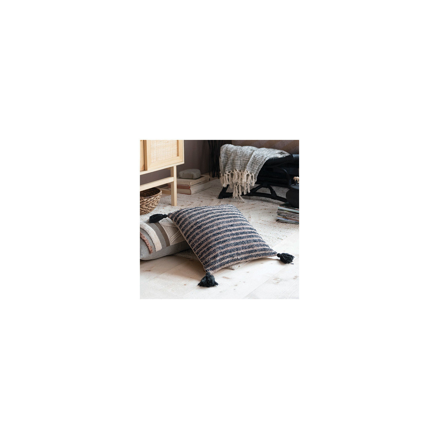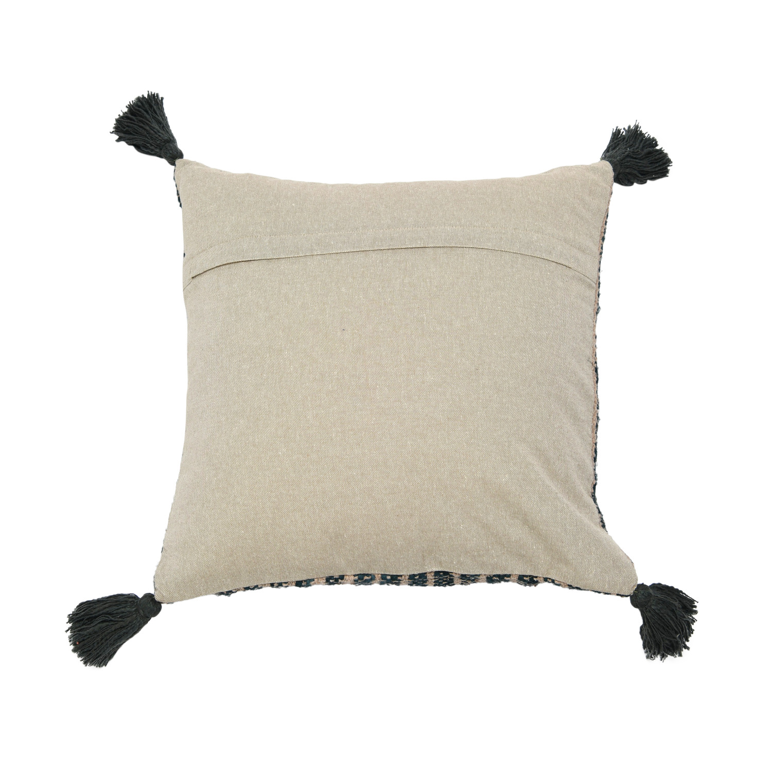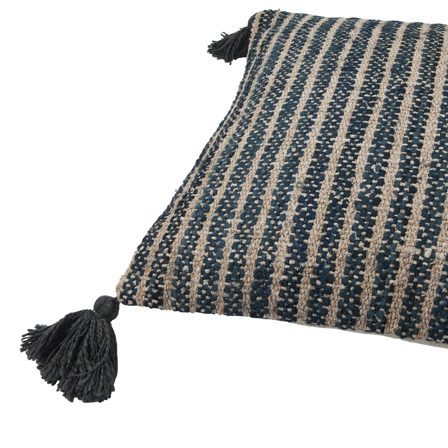 Catalog Name: 18" Square Woven Cotton Striped Pillow w/ Tassels, Black & Tan Color
