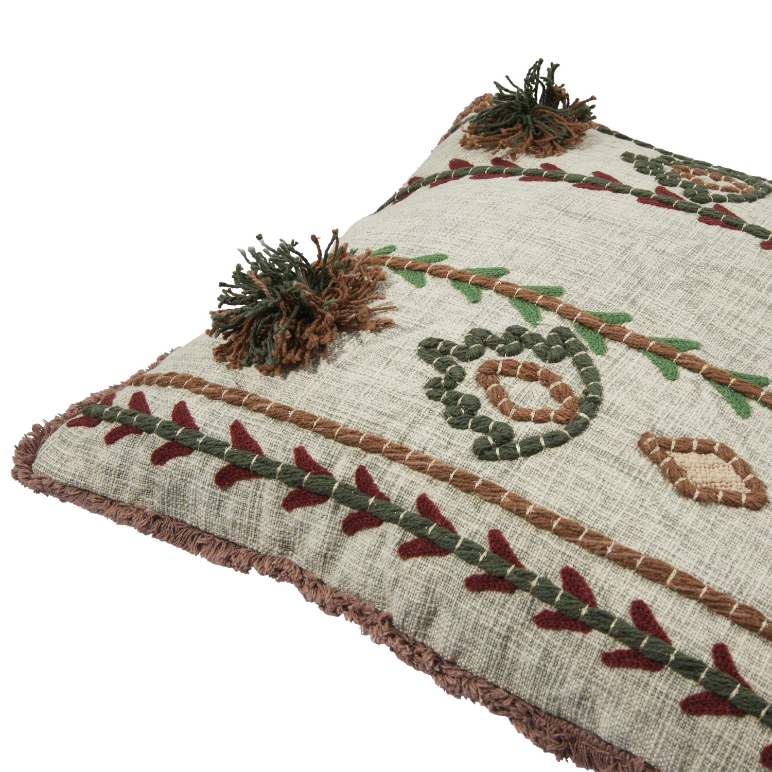 Catalog Name: 20" Square Cotton Pillow w/ Embroidery, Chambray Back & Fringe, Multi Color