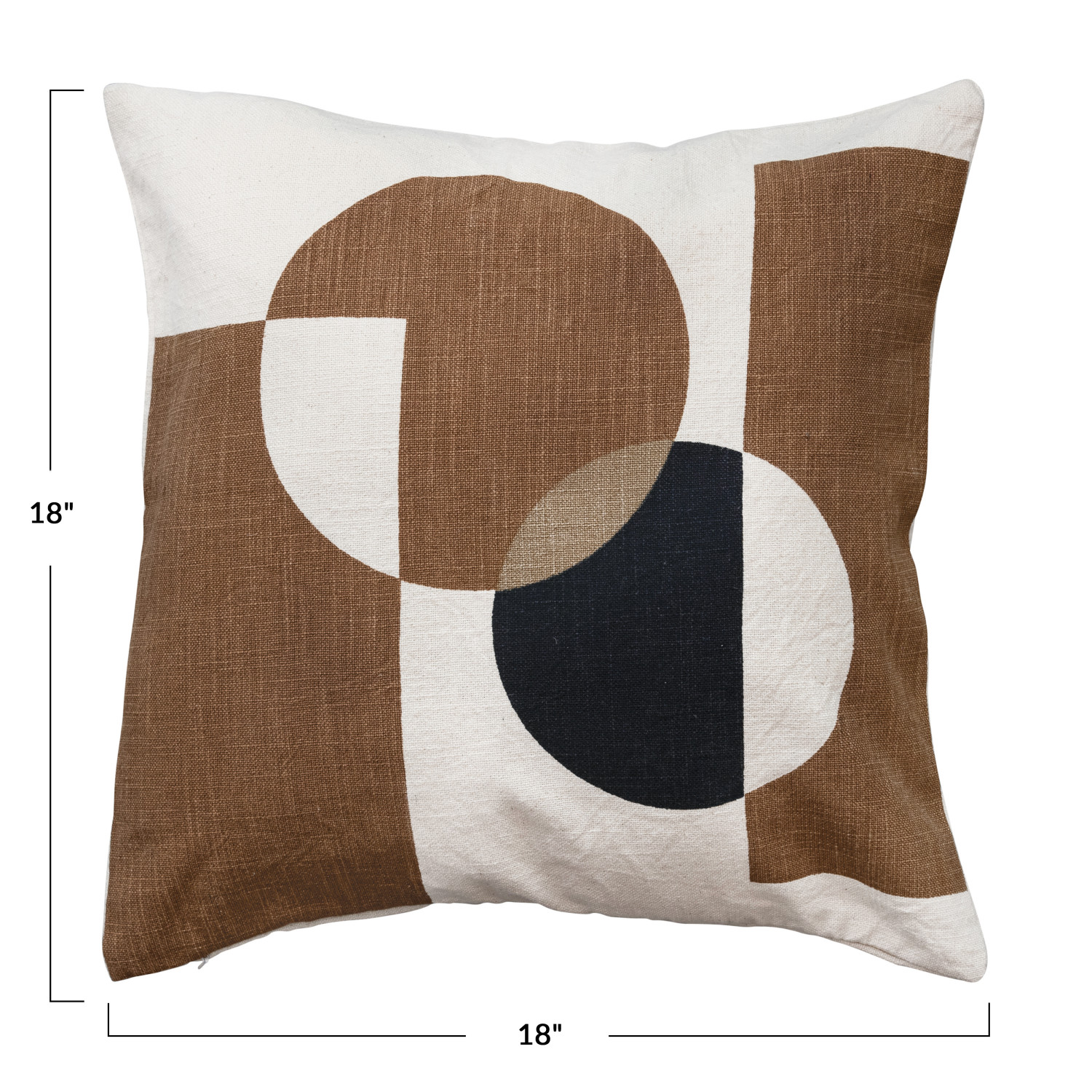 18" Square Cotton Slub Printed Pillow w/ Circles & Rectangles, Polyester Fill