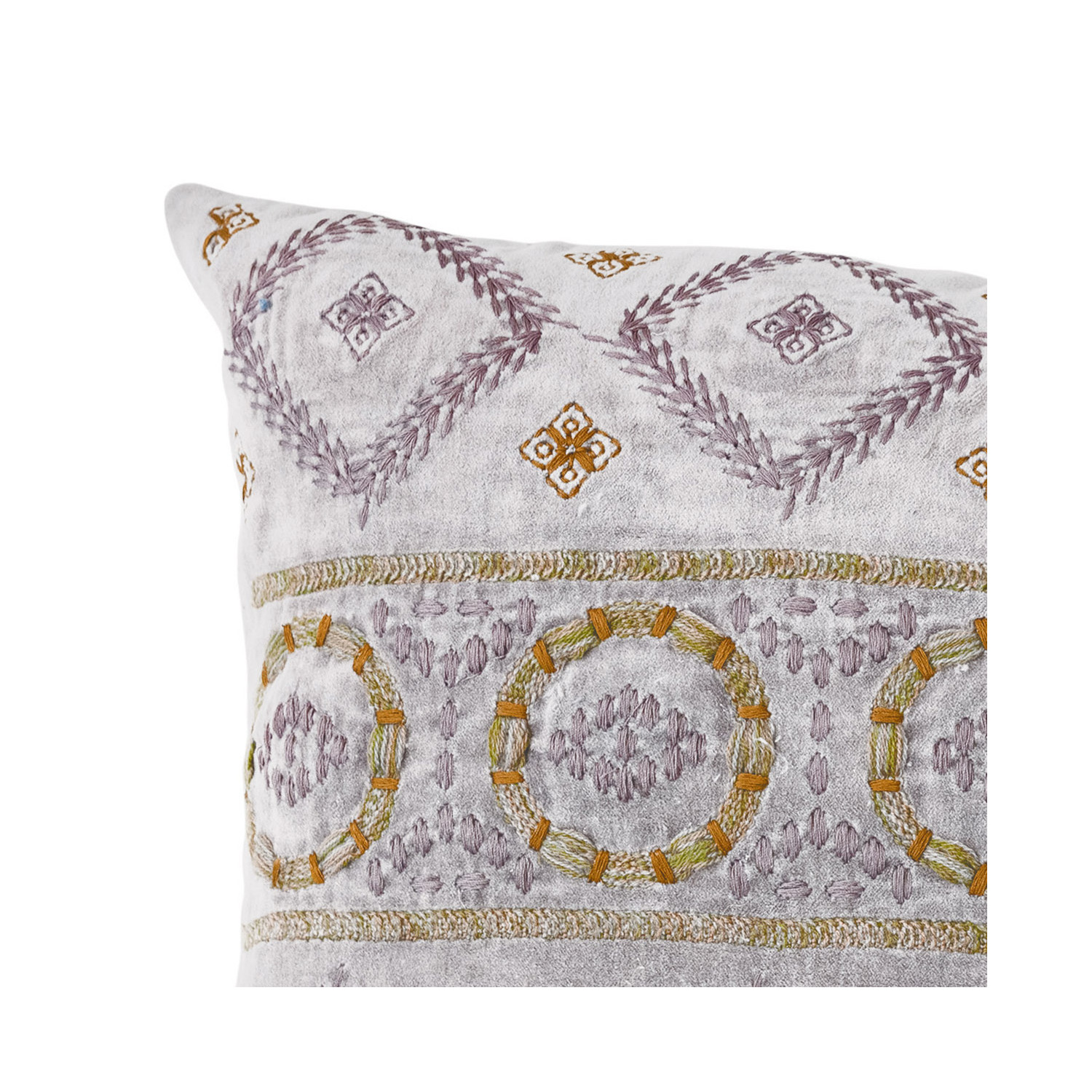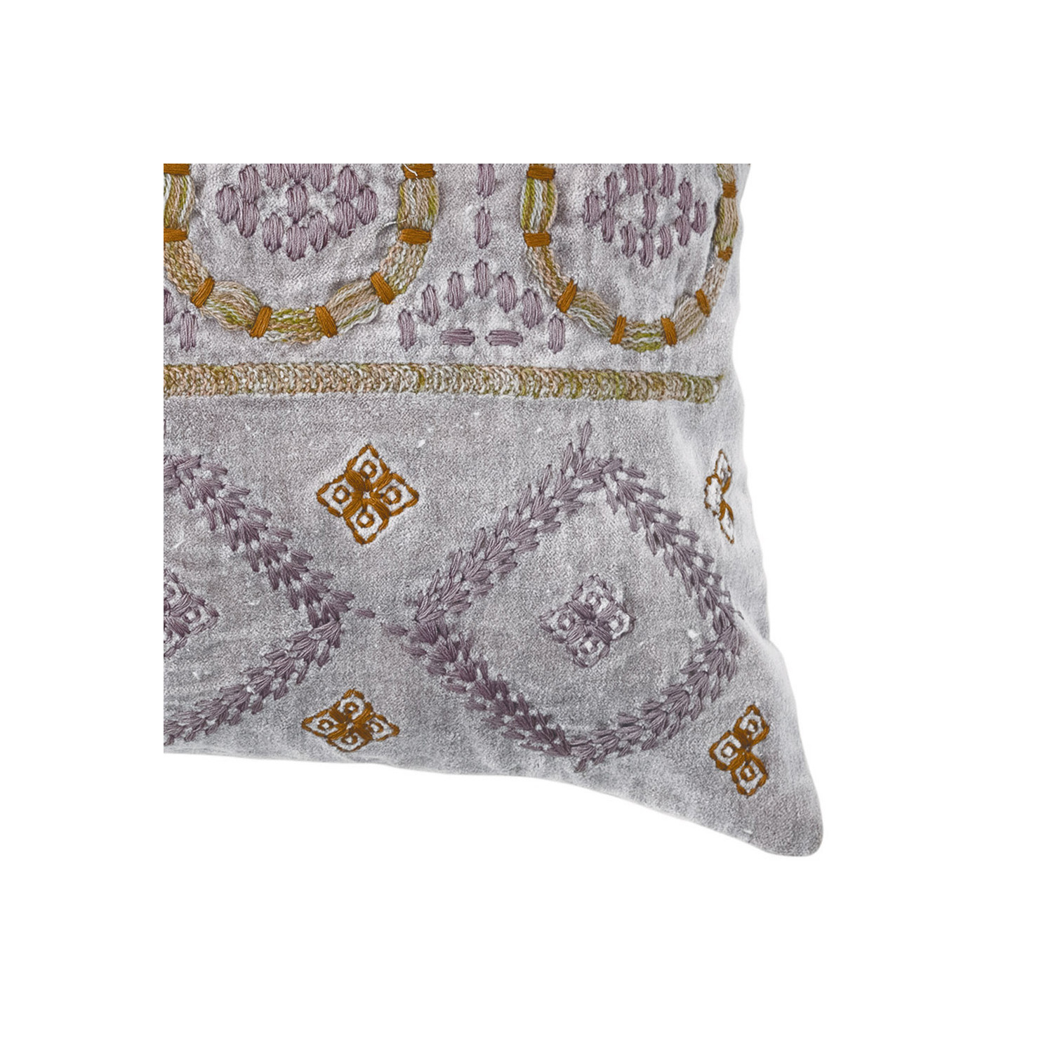 This global inspired lumbar pillow features supple cotton velvet finished with intricately embroidered geometric patterns. Display in a bedroom or living space of any style from Scandinavian to global. Machine Wash Warm Gentle Cycle, Do Not Bleach, Tumble Dry Low, Warm Iron If Needed or Hand Wash. Made from cotton.