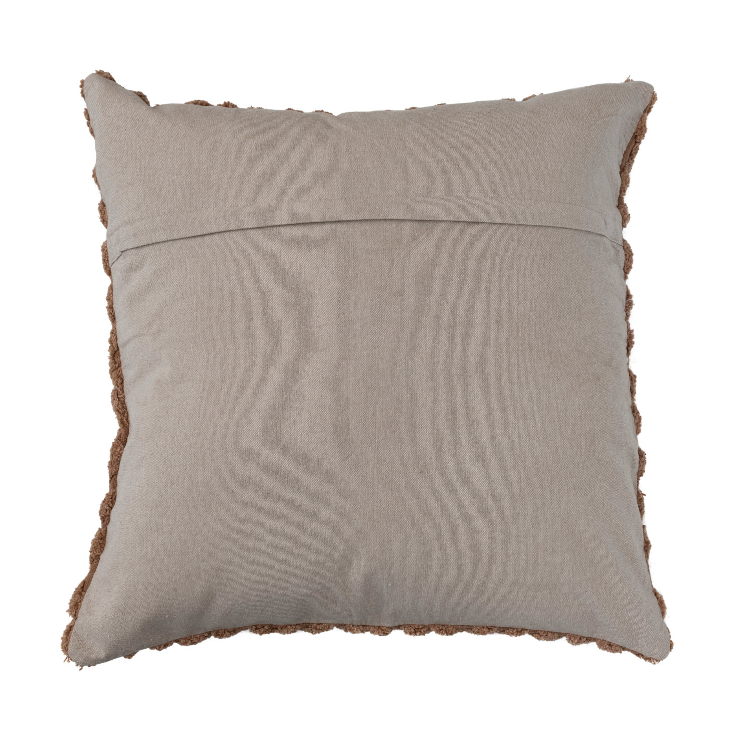Catalog Name: 24" Square Cotton Tufted Pillow w/ Diamond Pattern & Chambray Back, Brown & Natural