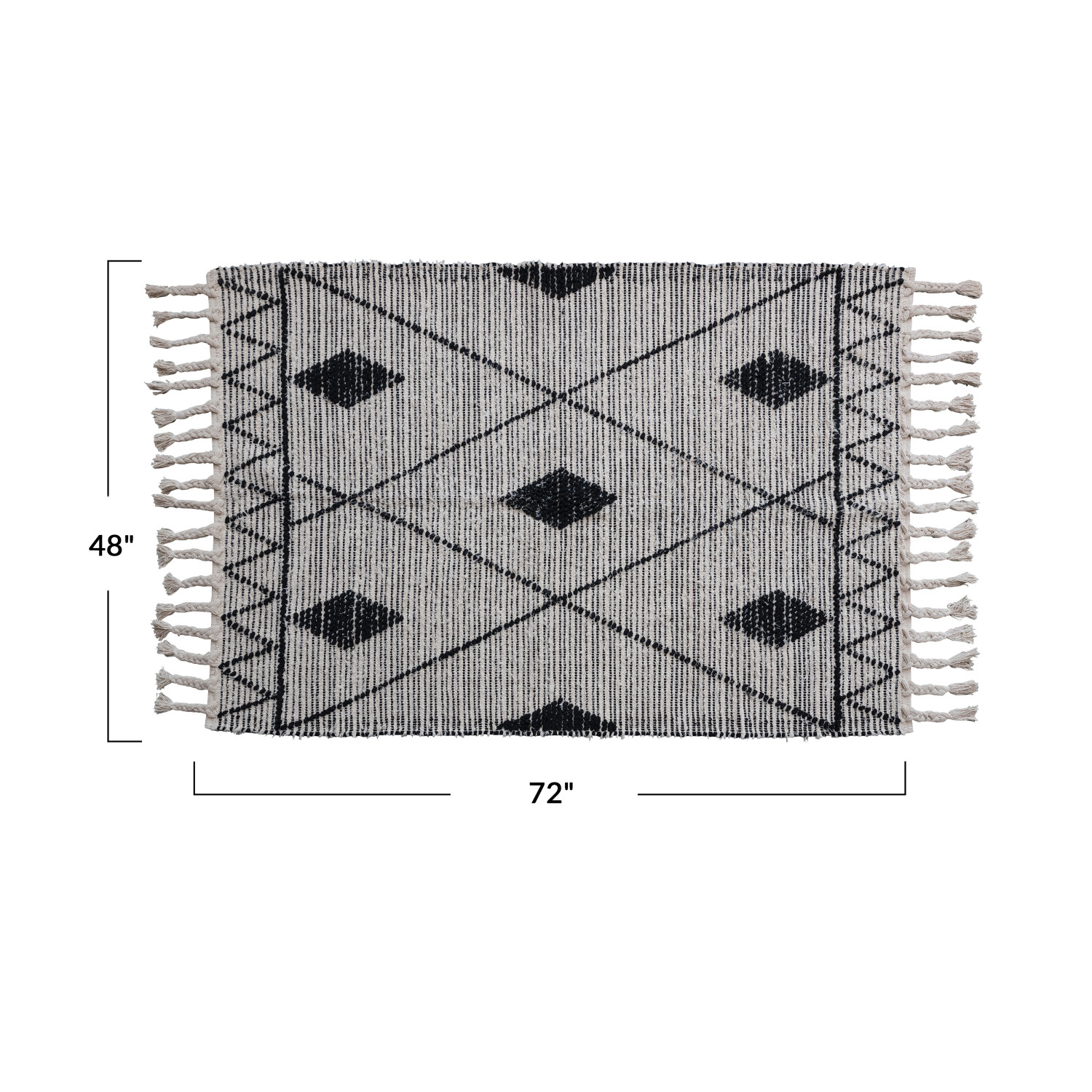 Catalog Name: 4' x 6' Hand-Woven Cotton Rug w/ Geometric Pattern & Braided Fringe, Black & Natural