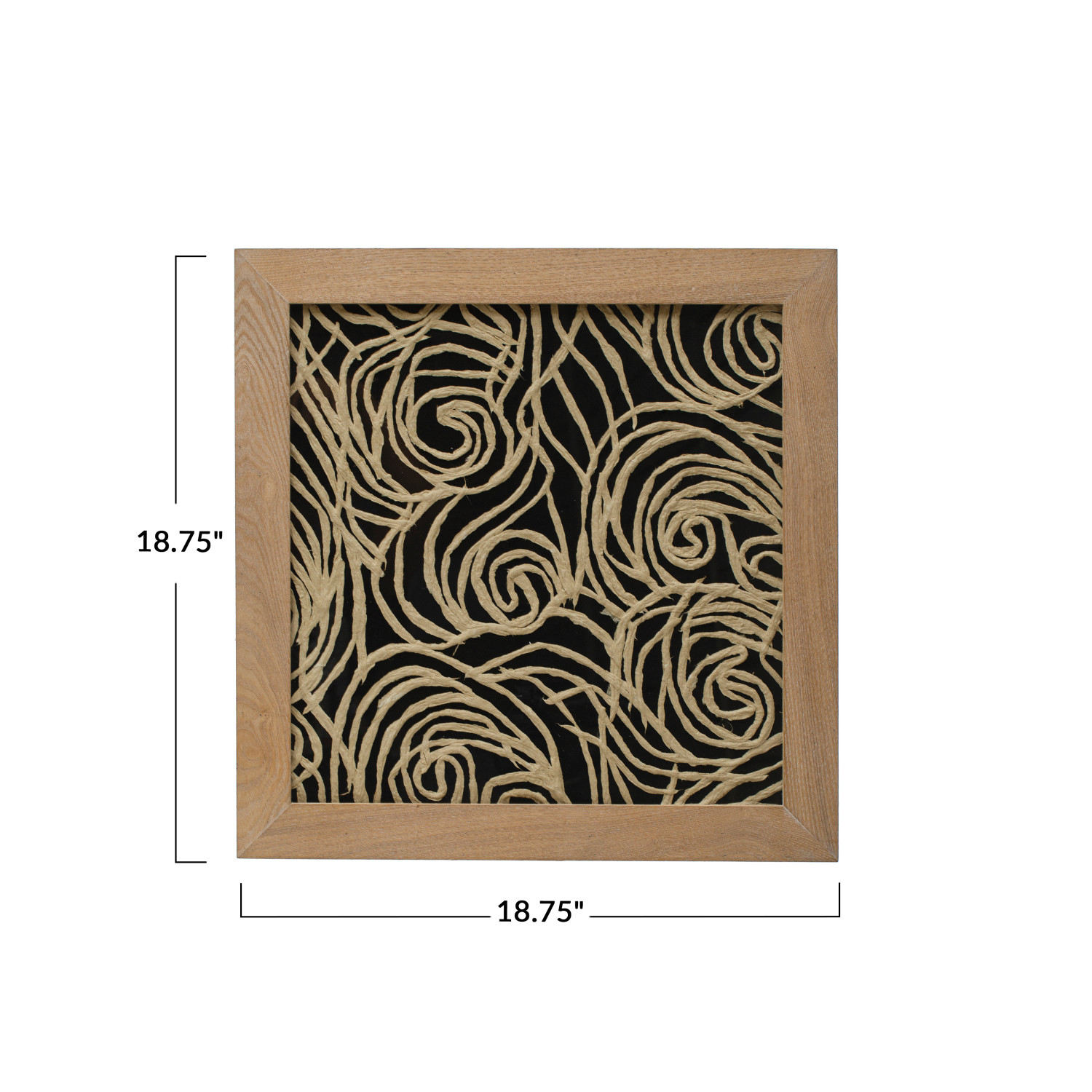 Catalog Name: 18-3/4" Square Wood Framed Glass Wall Décor w/ Abstract Image, Natural & Black