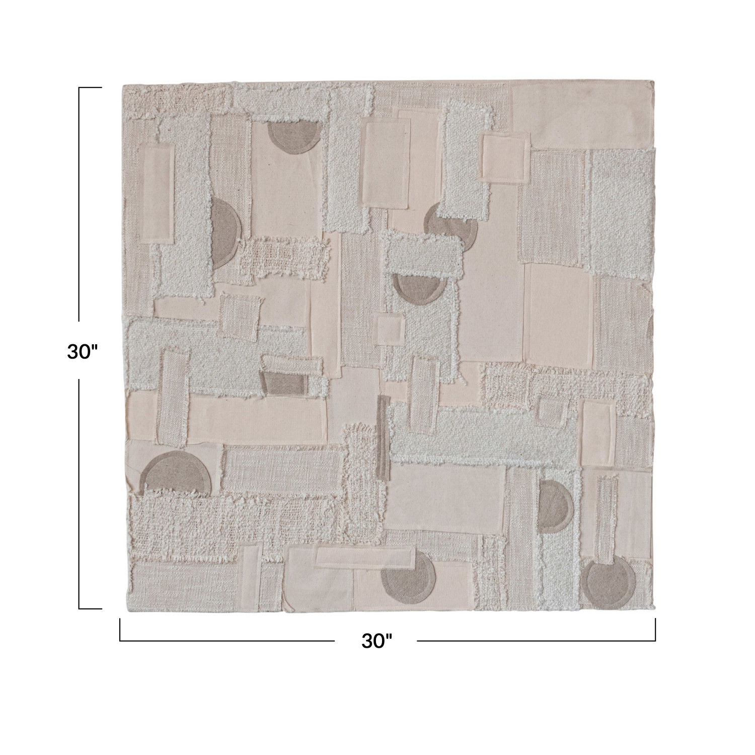 Catalog Name: 30" Square Cotton & Wool Patchwork Wall Décor w/ Oak Wood Frame, Natural & Cream Color