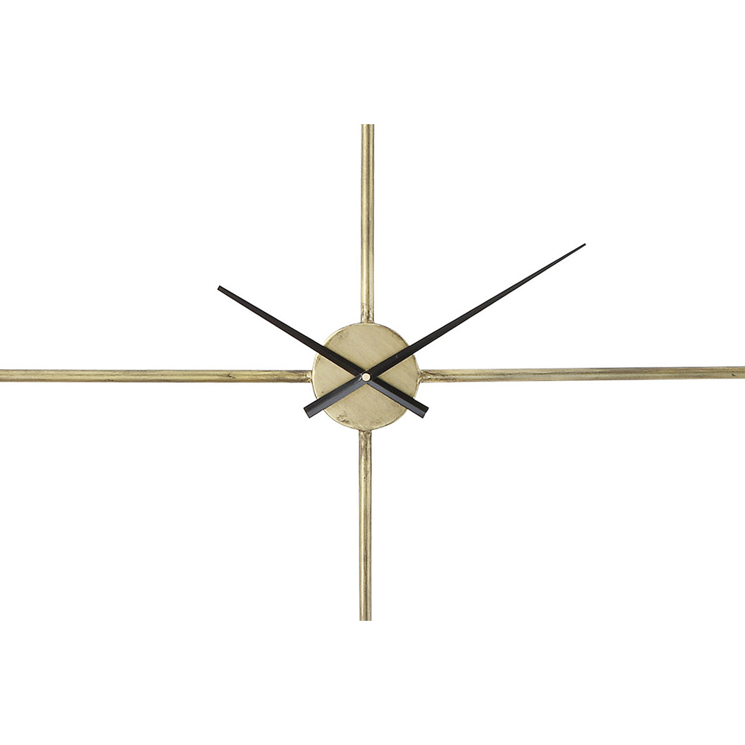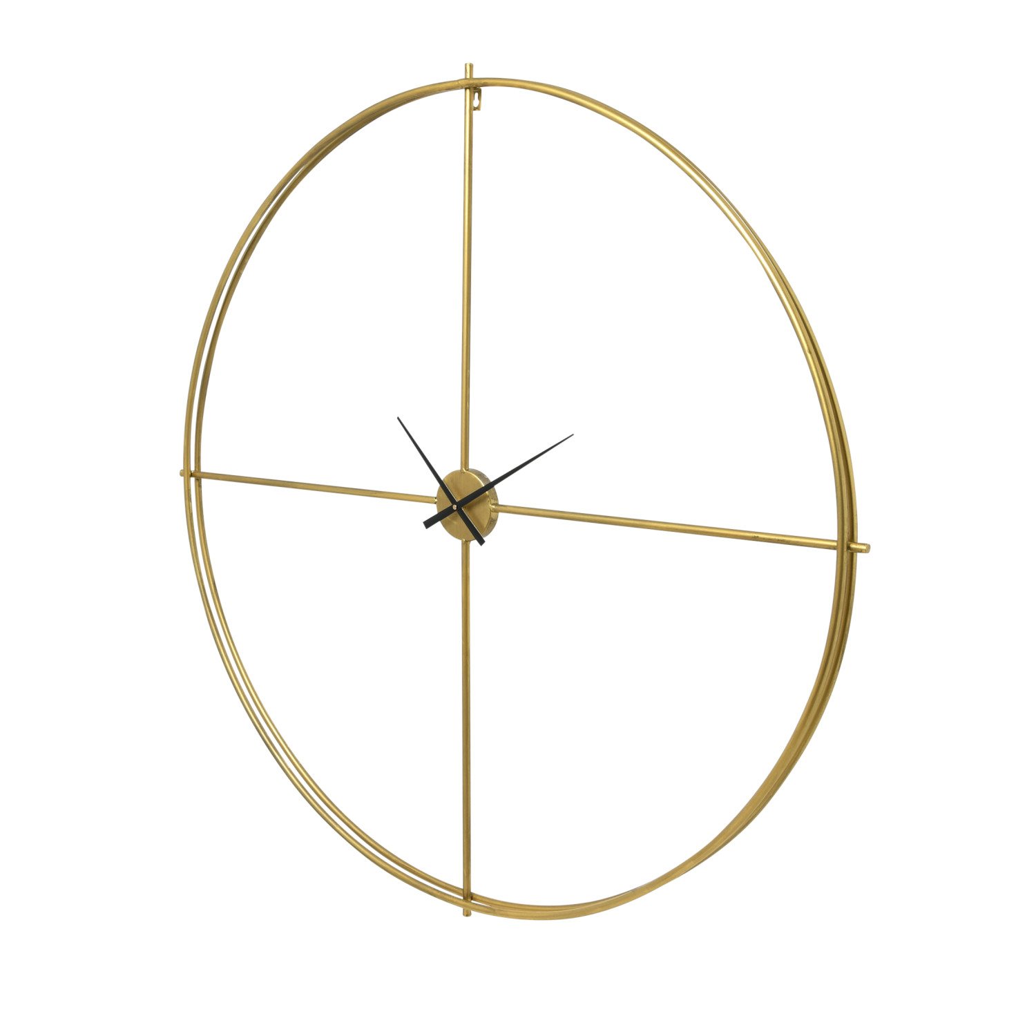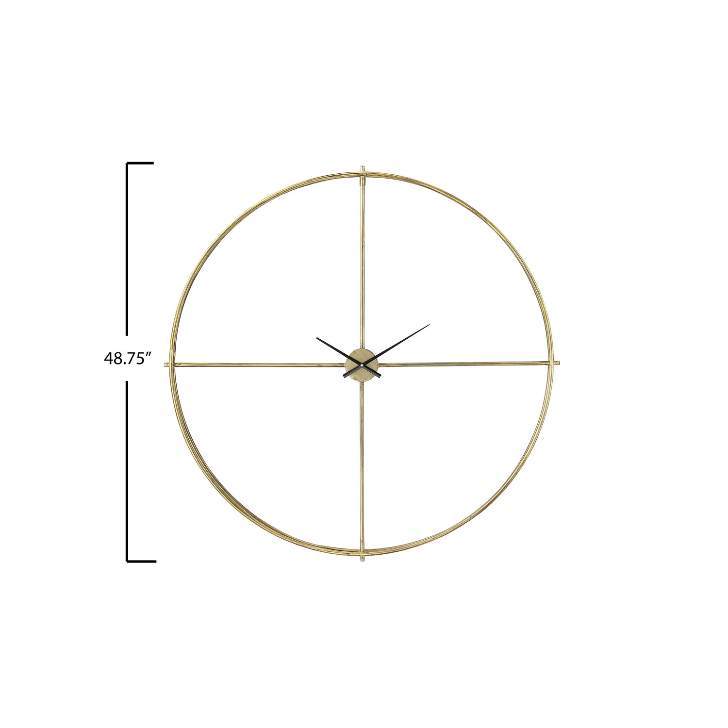 Simple lines create this gold metal wall clock. The open design allows the wall color to pier through the center making the wall and clock one. Be truly creative and place decorator paper or family photos in the space behind the clock making it a one of a kind piece.