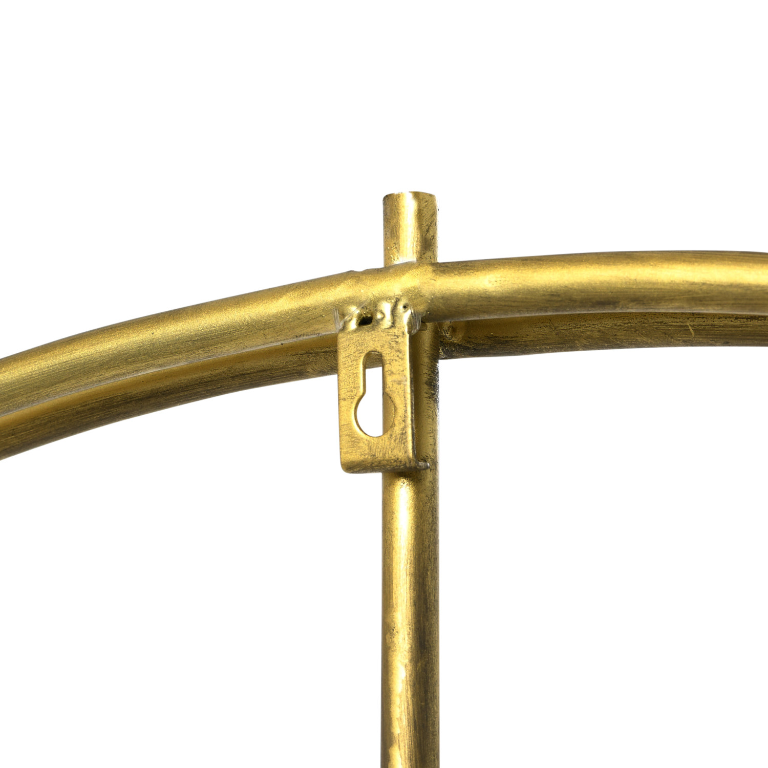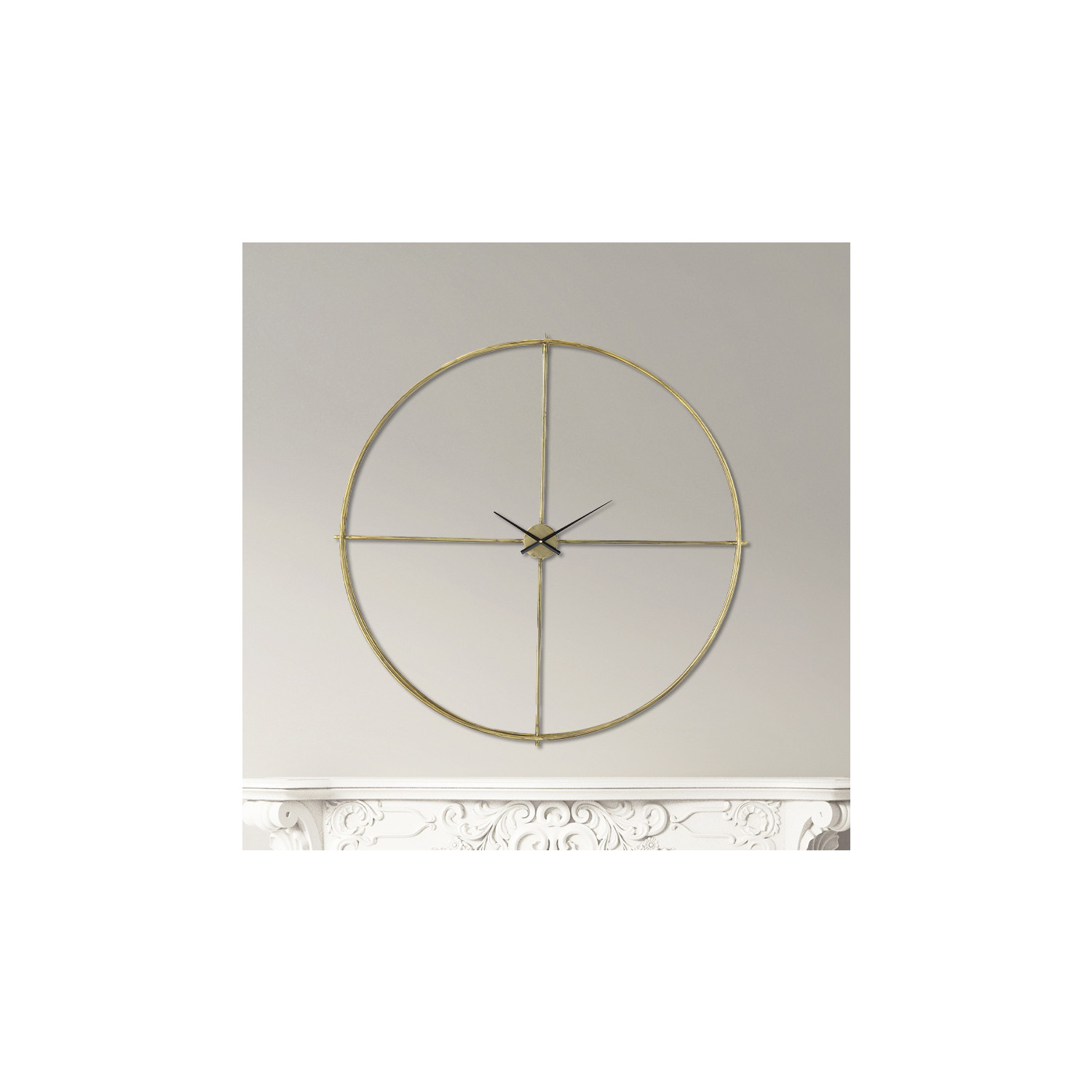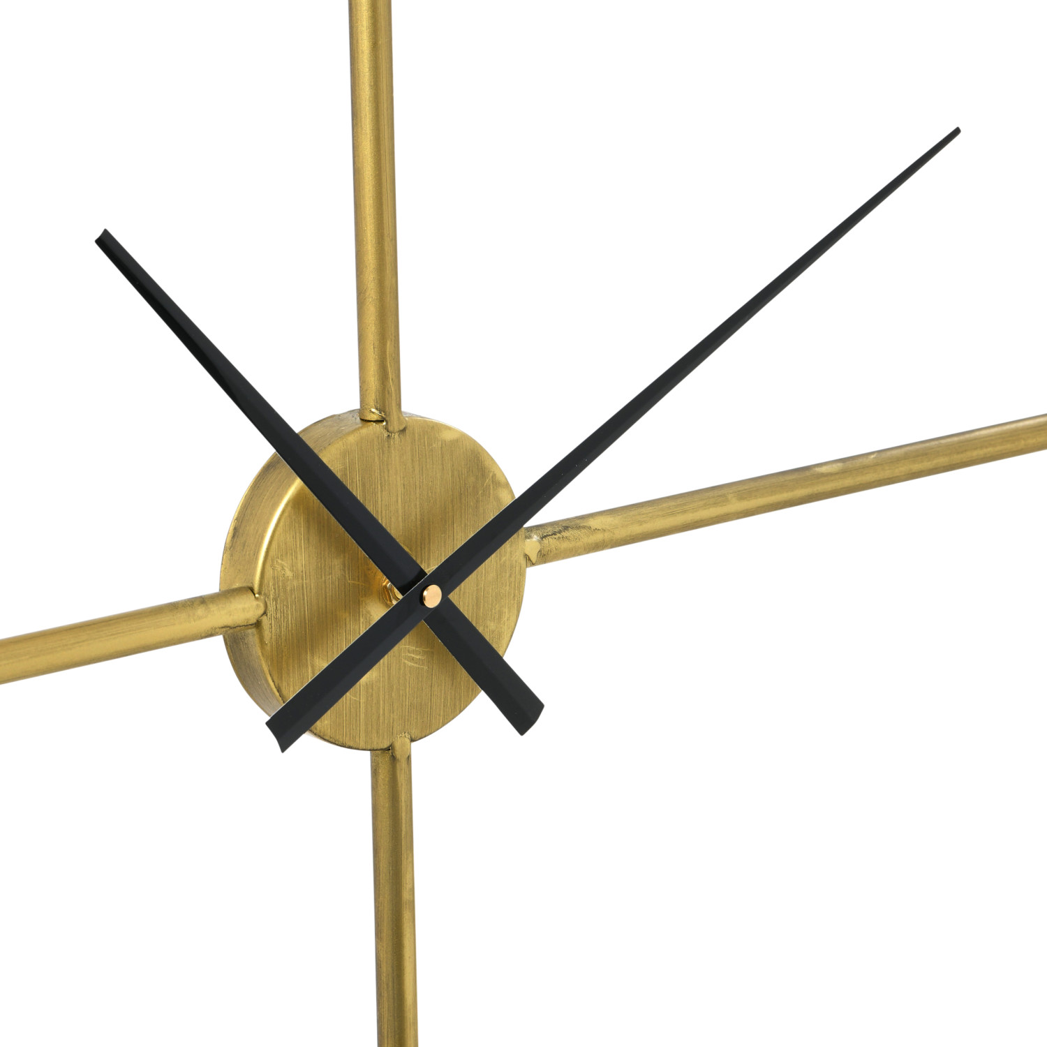 Simple lines create this gold metal wall clock. The open design allows the wall color to pier through the center making the wall and clock one. Be truly creative and place decorator paper or family photos in the space behind the clock making it a one of a kind piece.