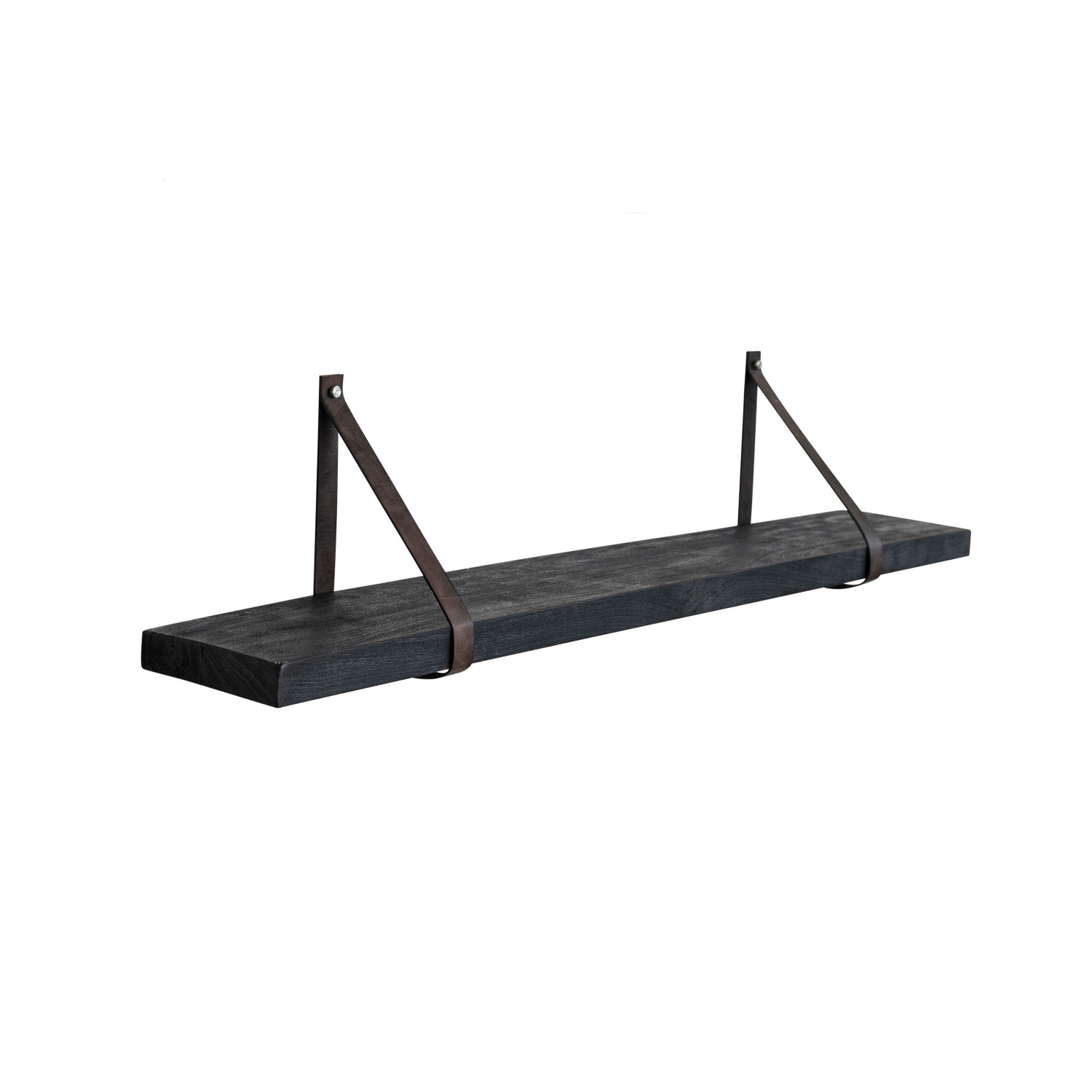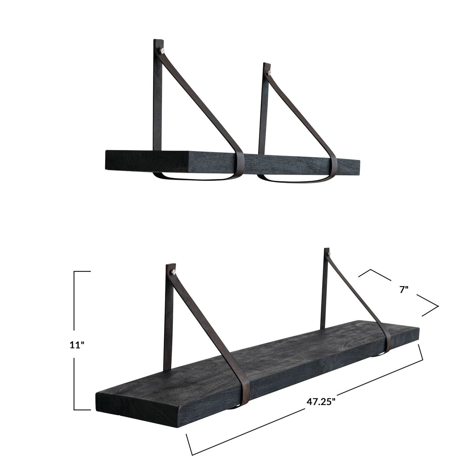 Catalog Name: 47-1/4"W x 7"D x 11"H Mango Wood & Leather Wall Shelf, Black